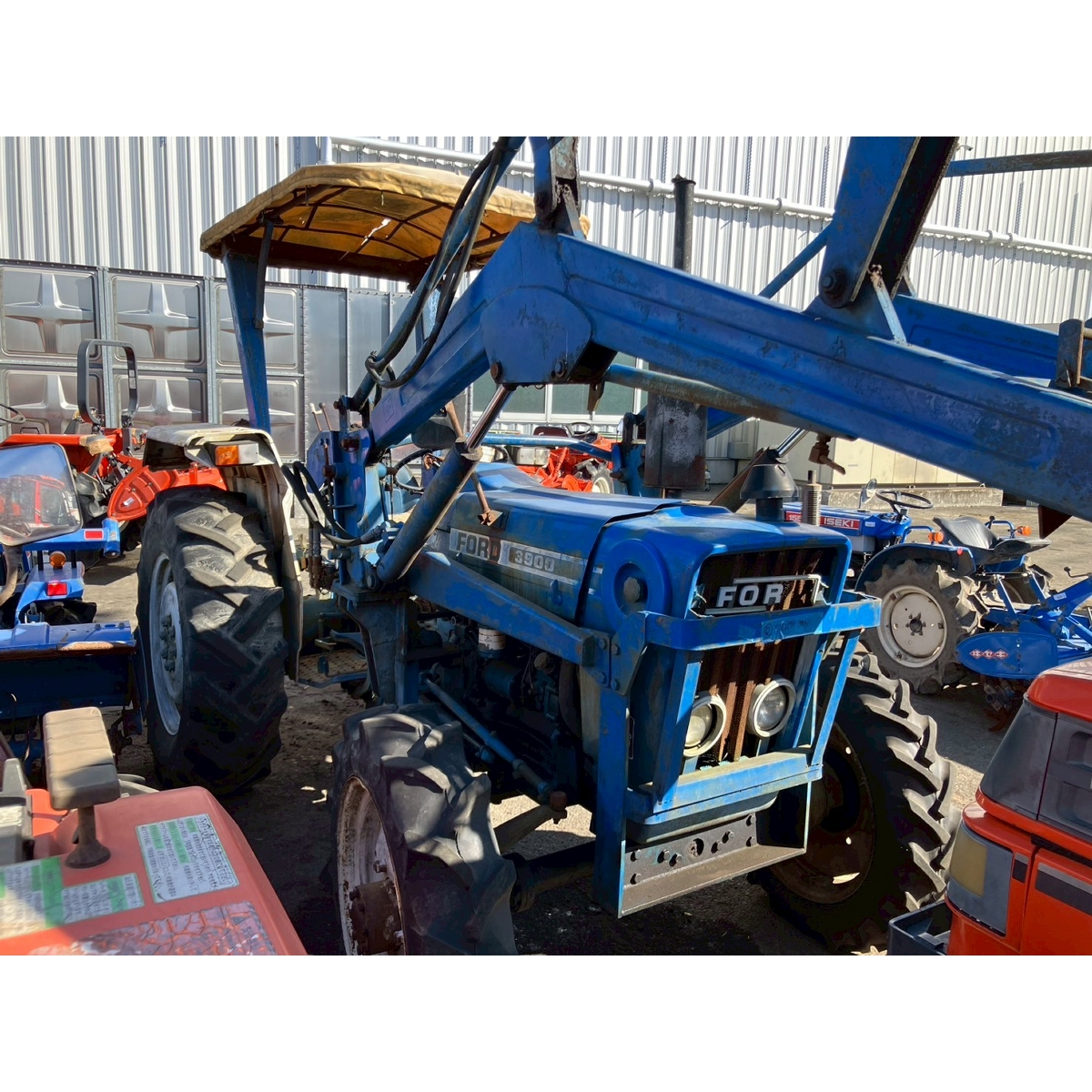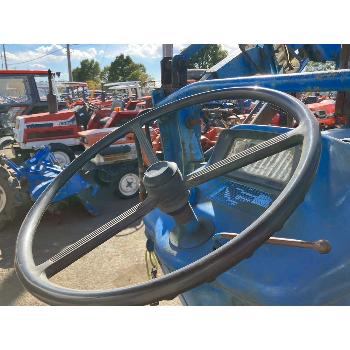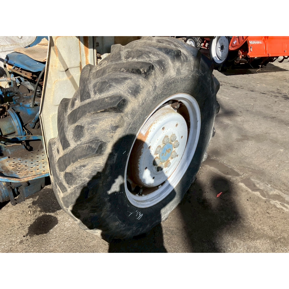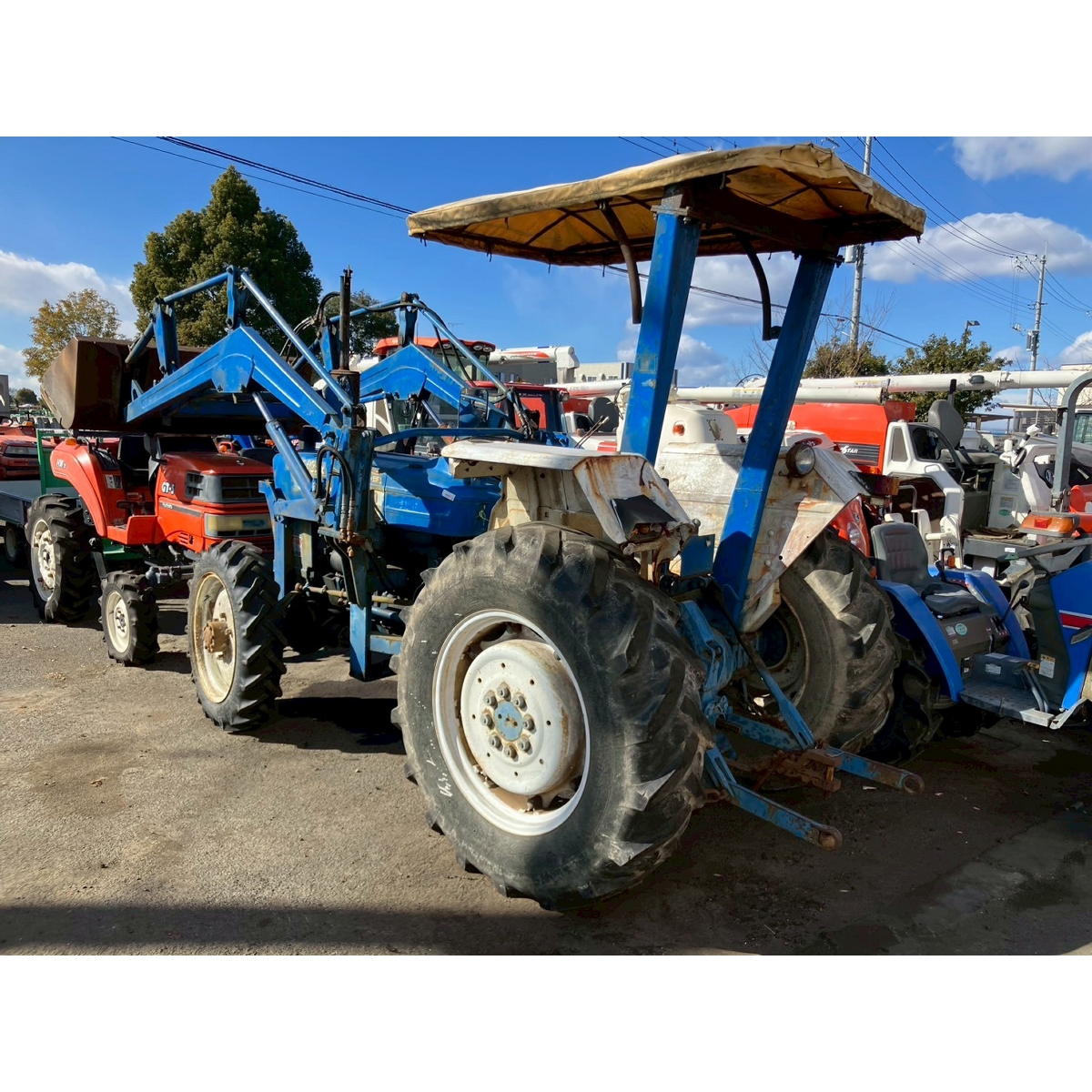 - no rotary, with ps, crack tires, with loader, corrosion/rust mask ,torn seat , repainted fuel leak in engine area, white smoke upon engine start, subsides once engine warms up