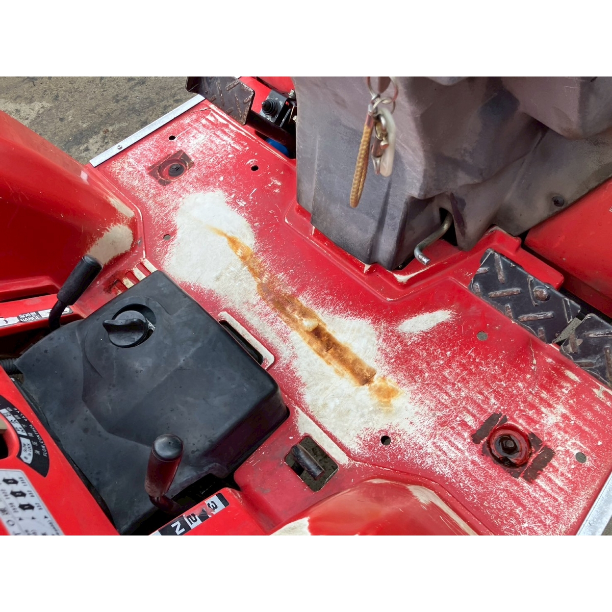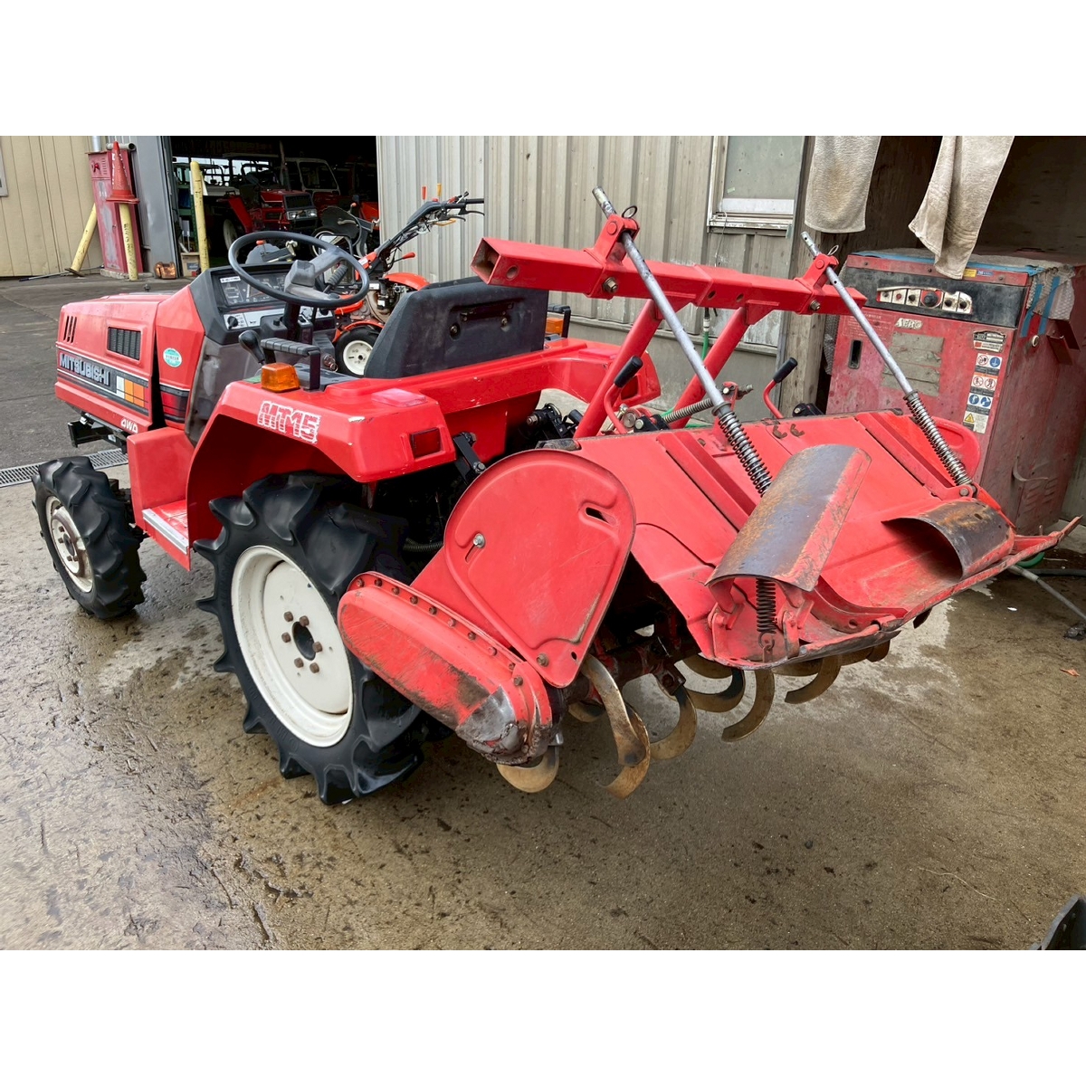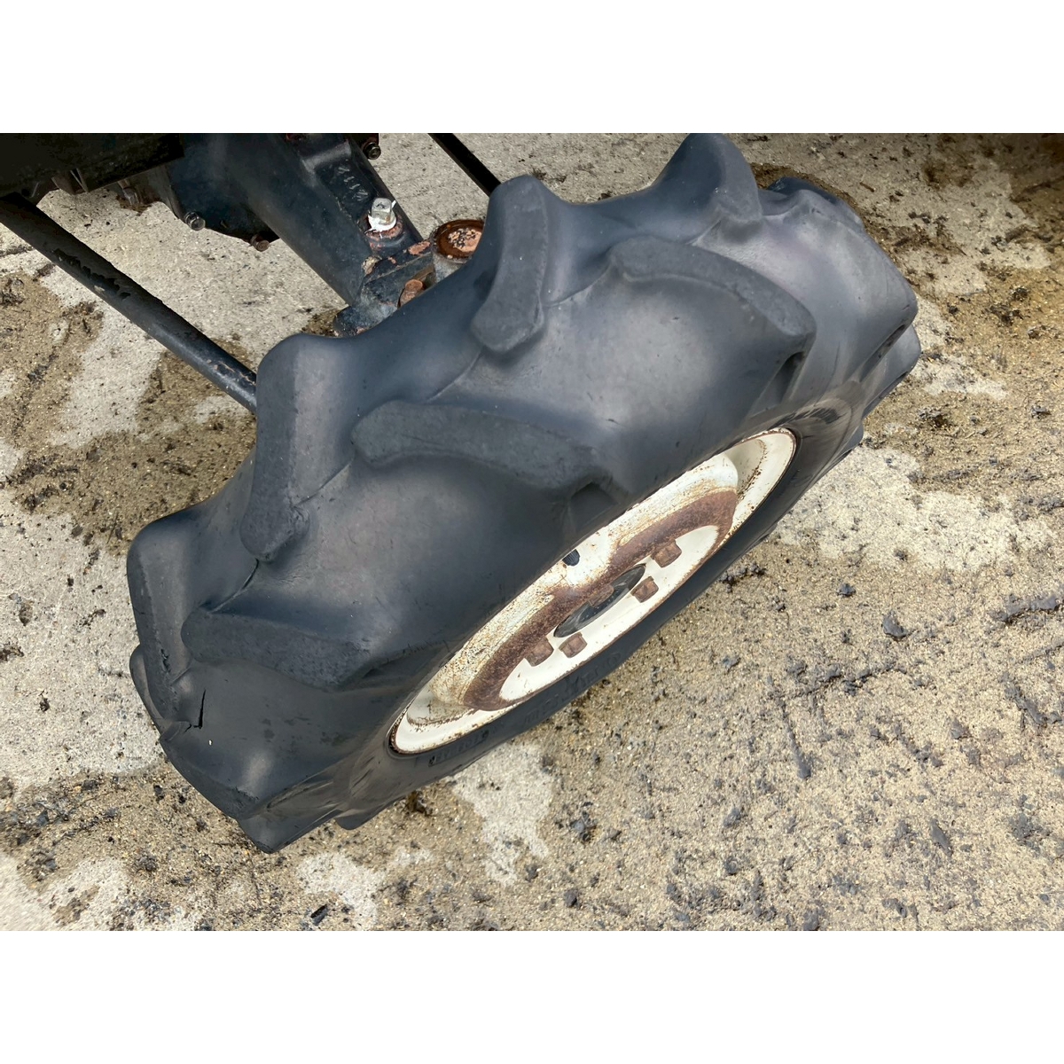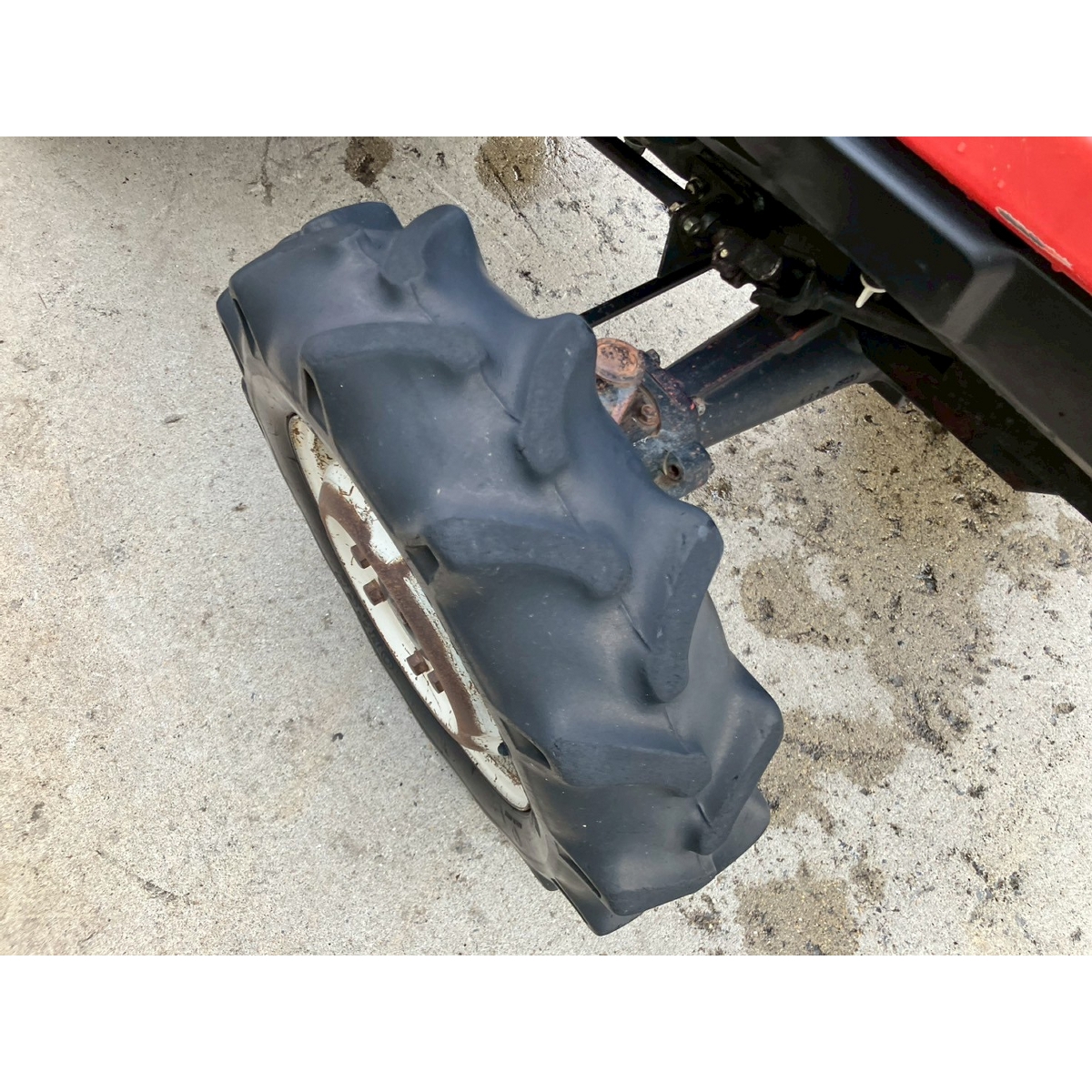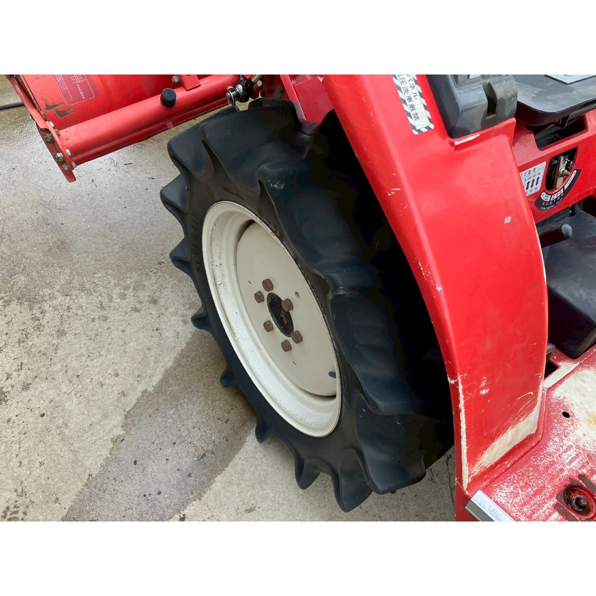 - with rotary, with battery, with ps, crack and worn tires Faded, dent on right side cover, axle oil seepage (left front wheel).