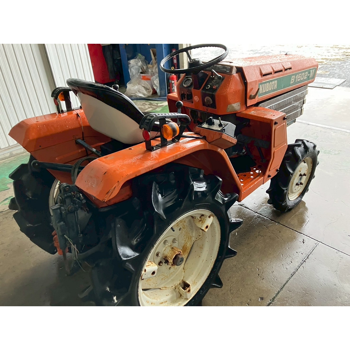 - Without rotary, without battery, without power steering, engine OK, front mask condition fair, side covers repainted, small crack on the mask, slight blow-by present, radiator has a small water leak