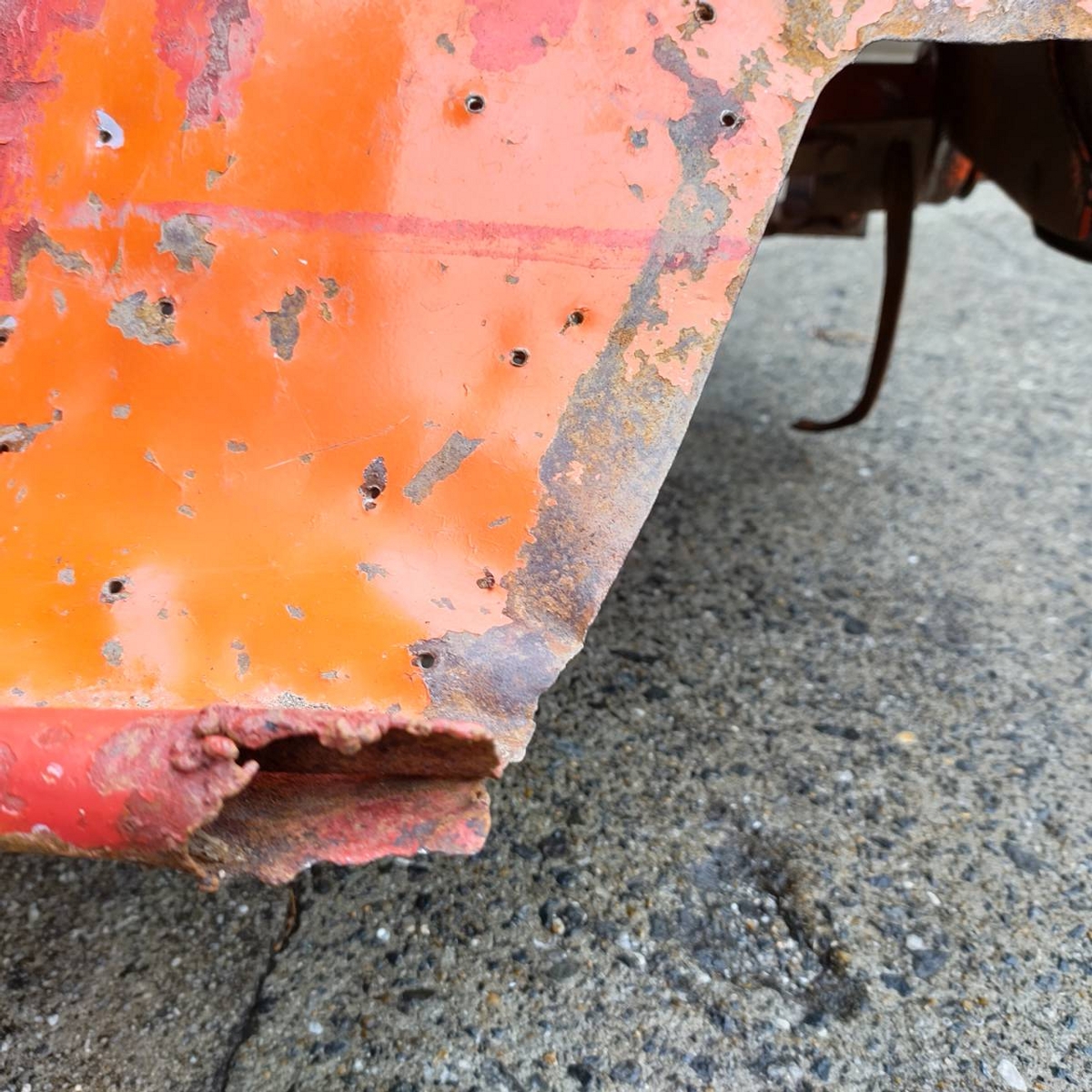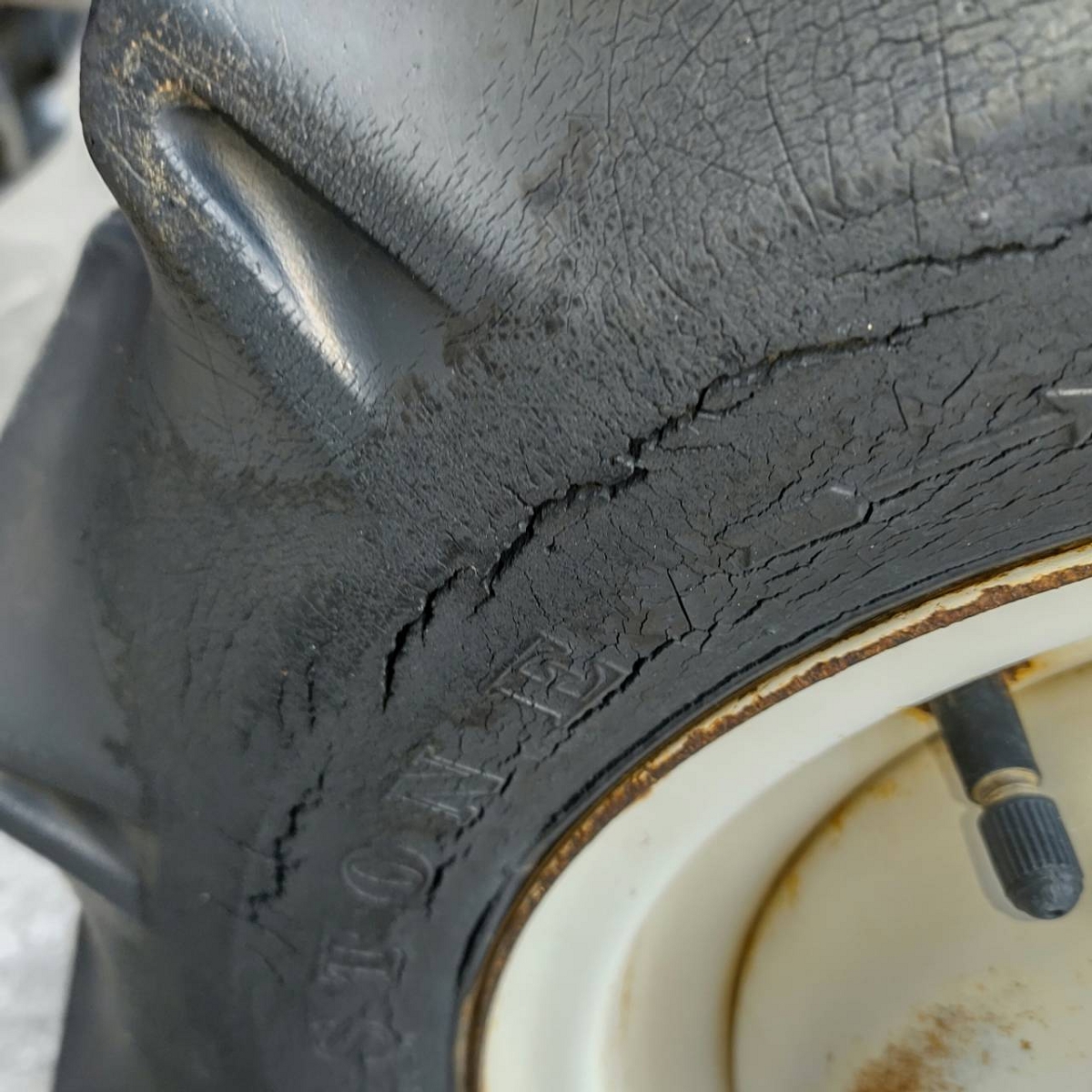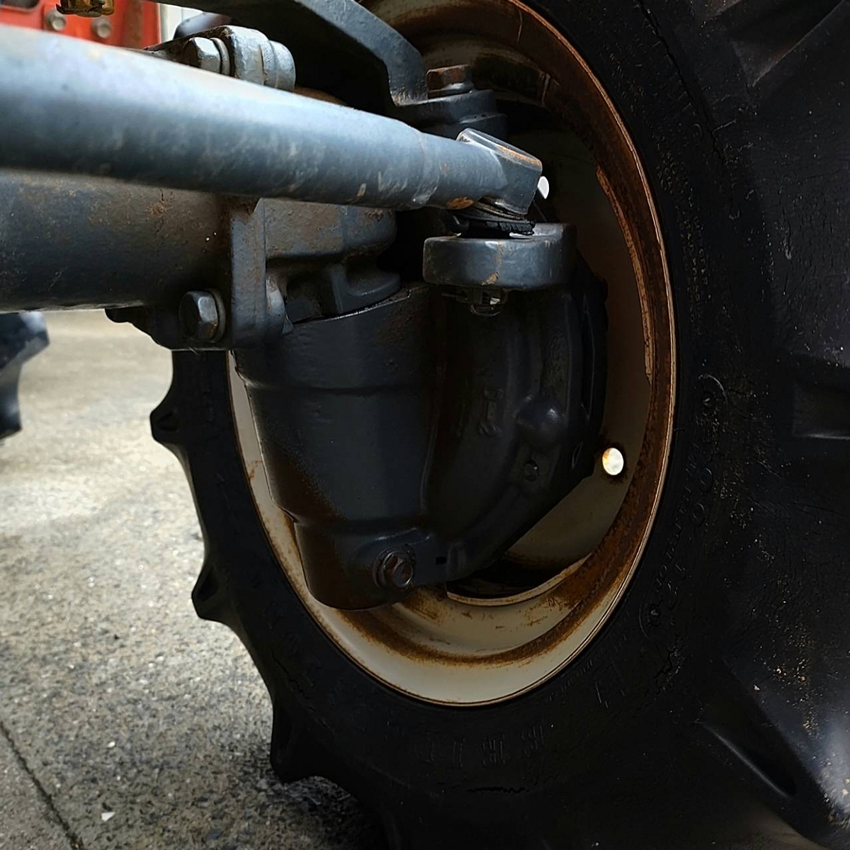 - with rotary, without battery, with ps, cracked tires, Mirror is damaged. Meter cable is torn. Chain case cover is missing. Rust on the exterior. Rotary lift is slow (possibly due to low oil level or partial blockage).