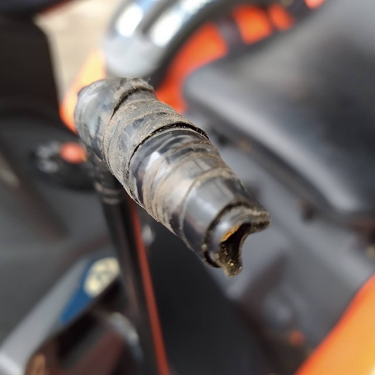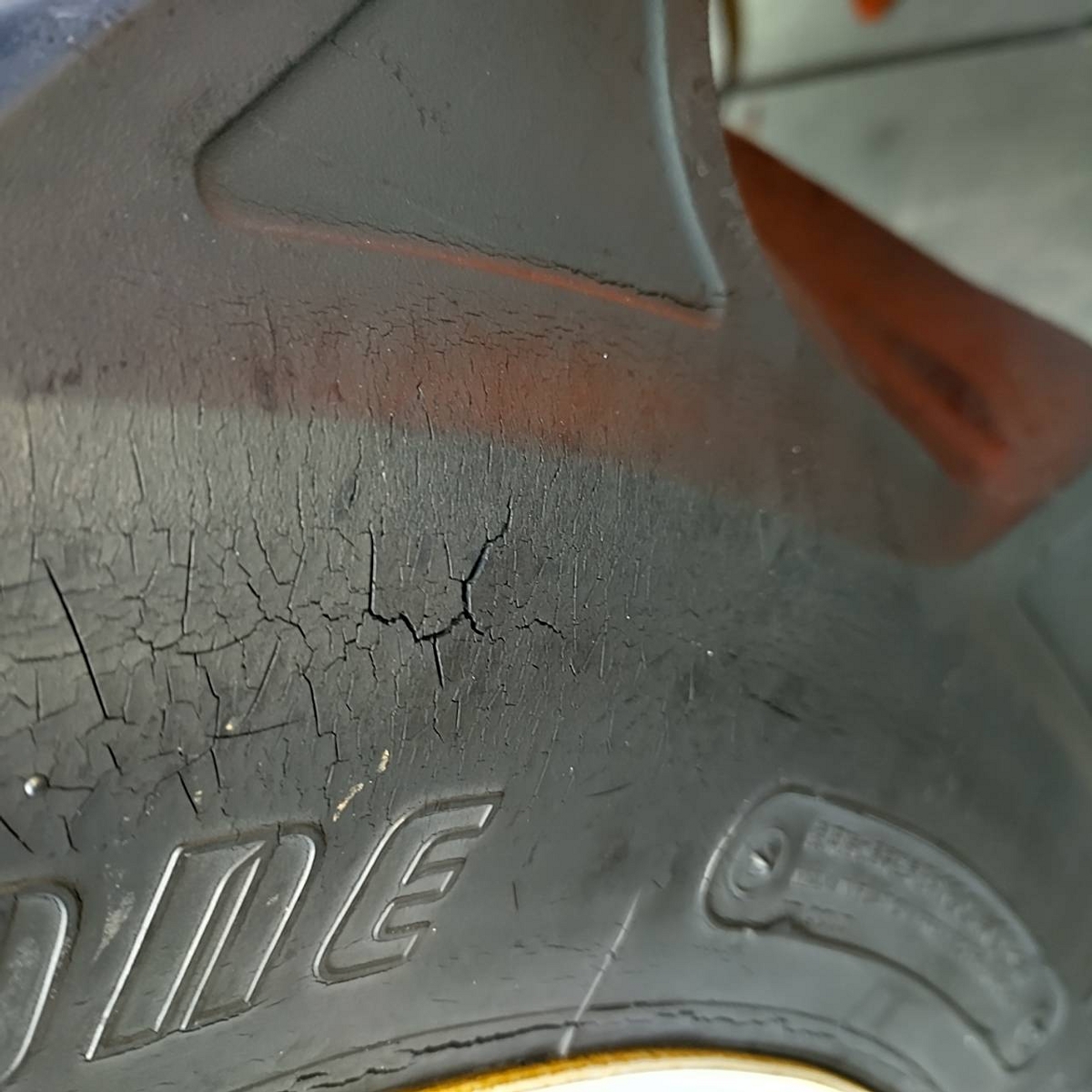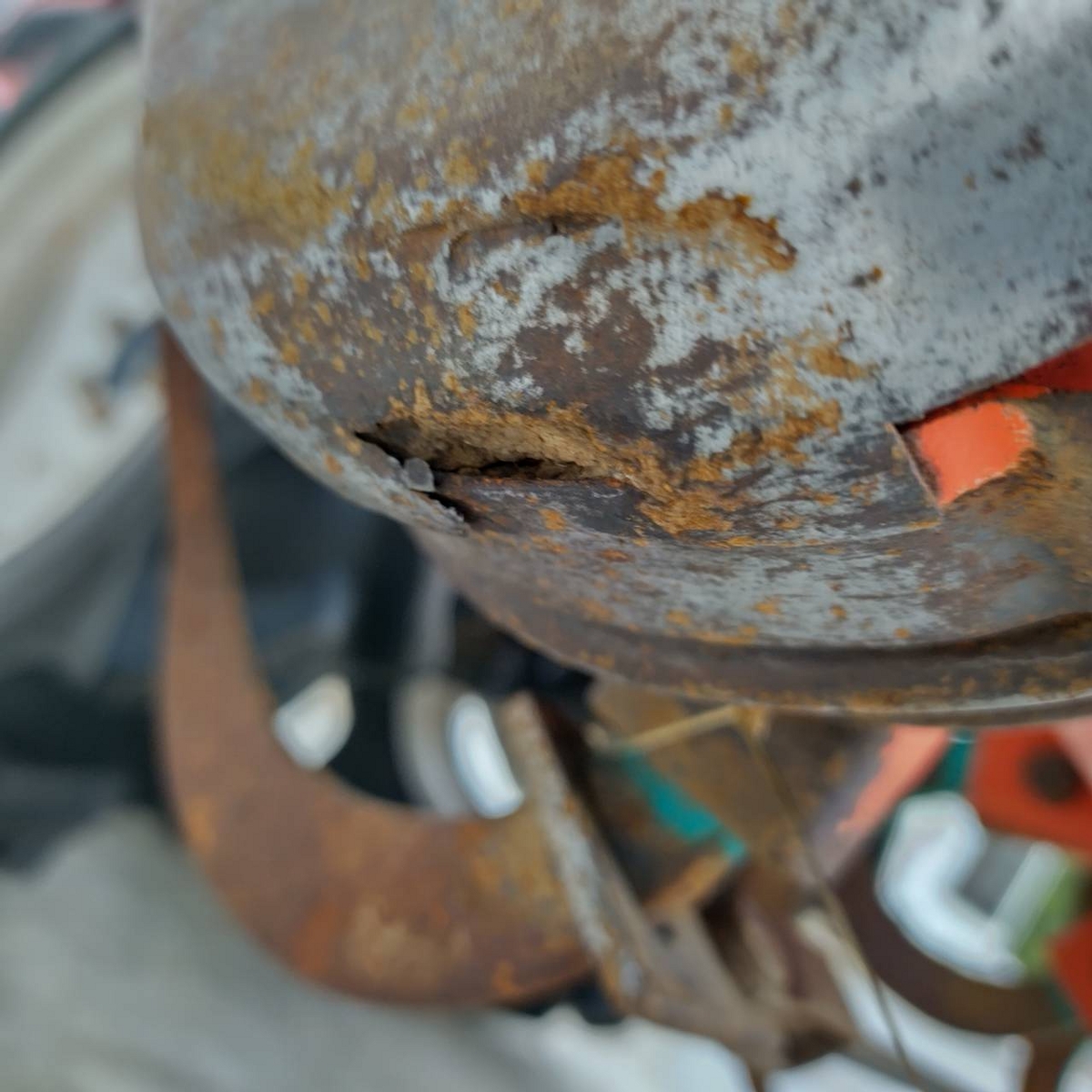 - with rotary, without battery, with ps, cracked tires, Mirror is damaged. Meter cable is torn. Chain case cover is missing. Rust on the exterior. Rotary lift is slow (possibly due to low oil level or partial blockage).