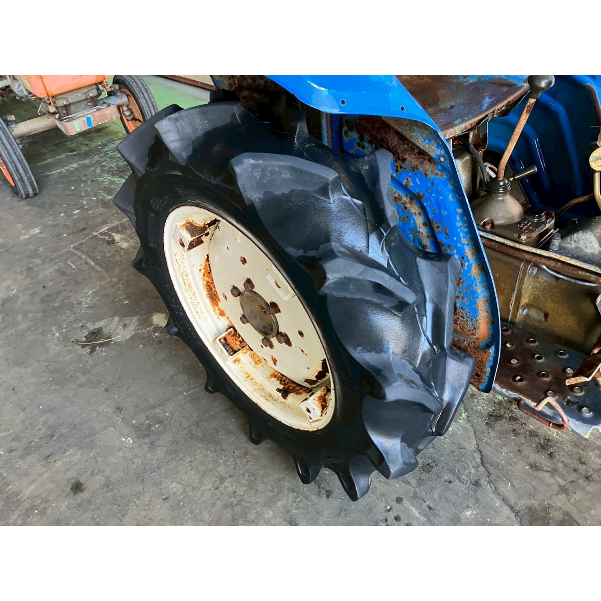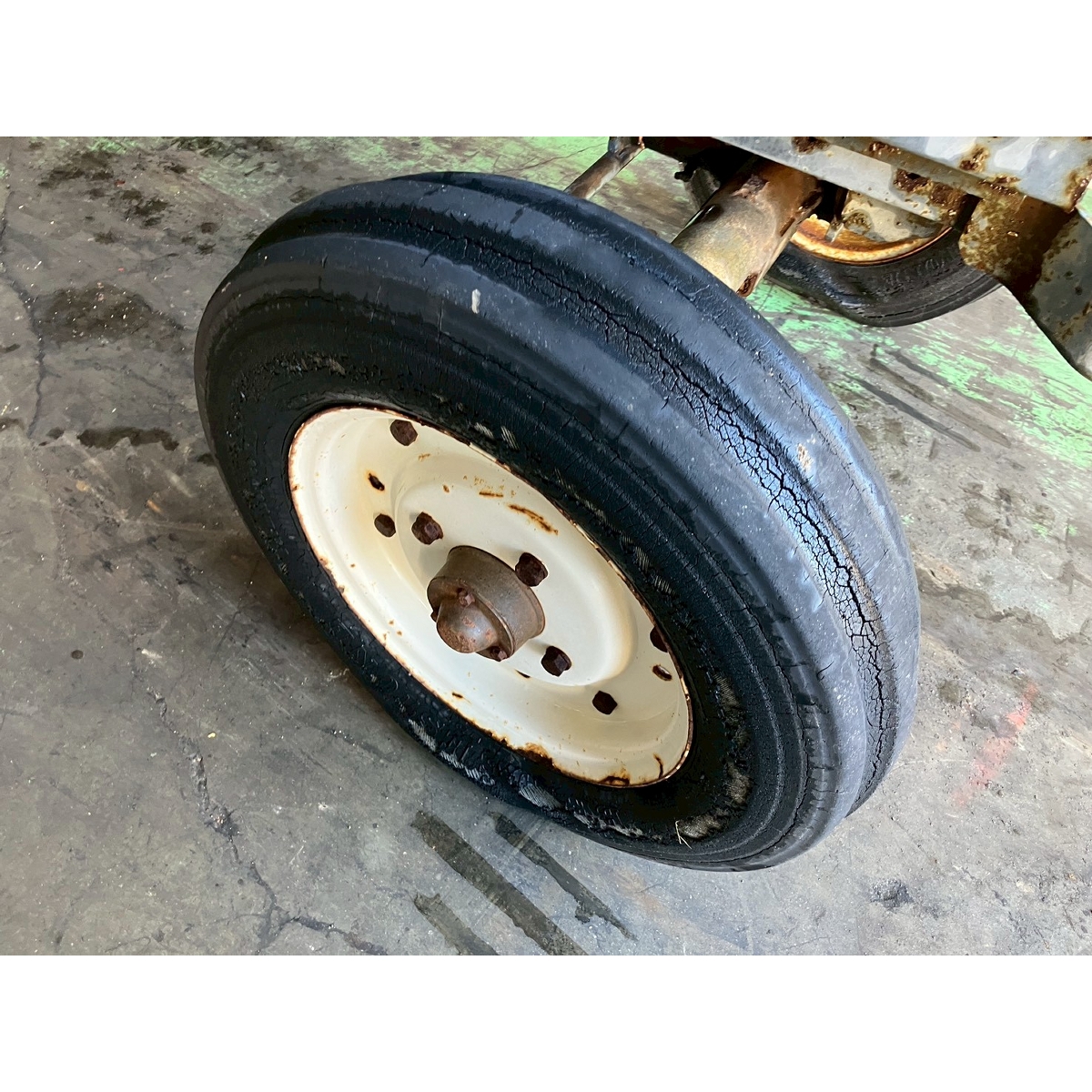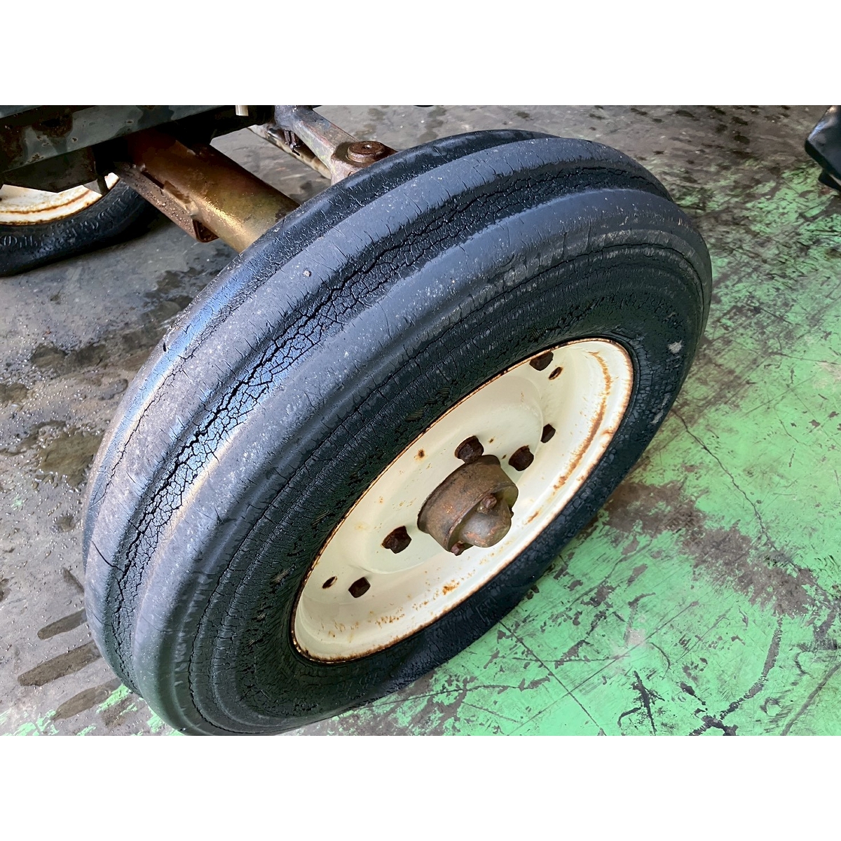 - without rotary, low battery, without ps, crack tires, slight white smoke, weak left brake, seepage on left and right rear axles, missing left side cover, low radiator water, and slightly loose fan belt.