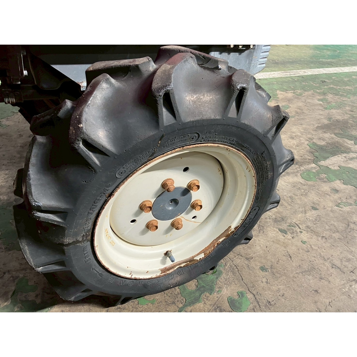 - Bent handle, cracked upper part of the meter panel, damaged front mask area, radiator dented with one fan blade missing, deformed left front wheel, and white smoke with blow-by (likely caused by oil circulation when the tractor tipped over on the left side – this is an assumption).