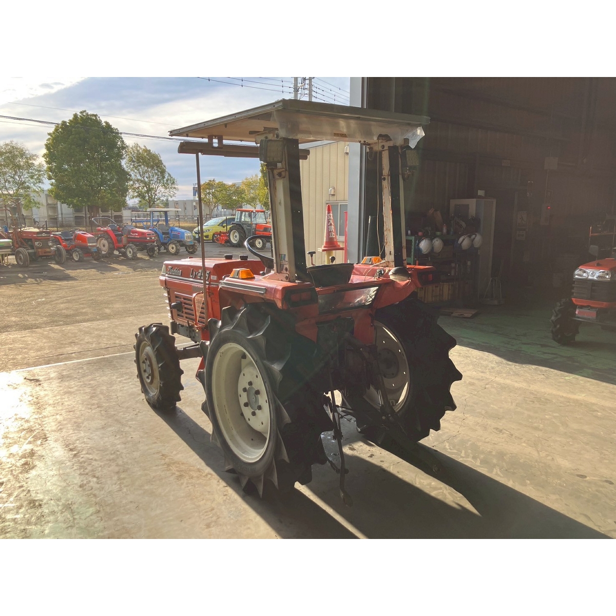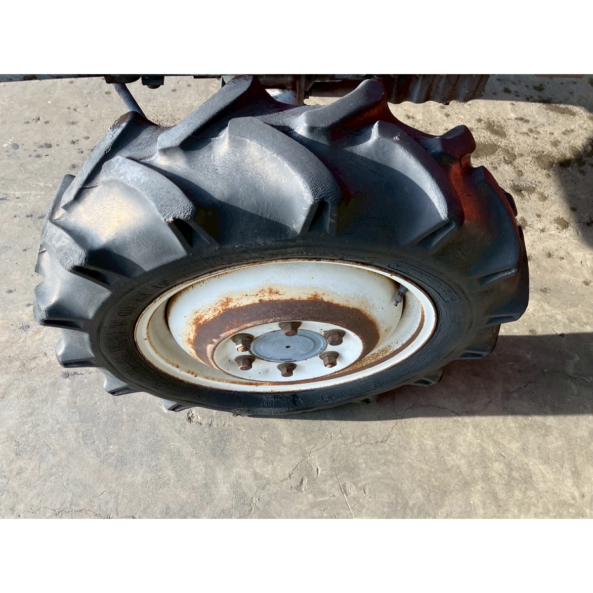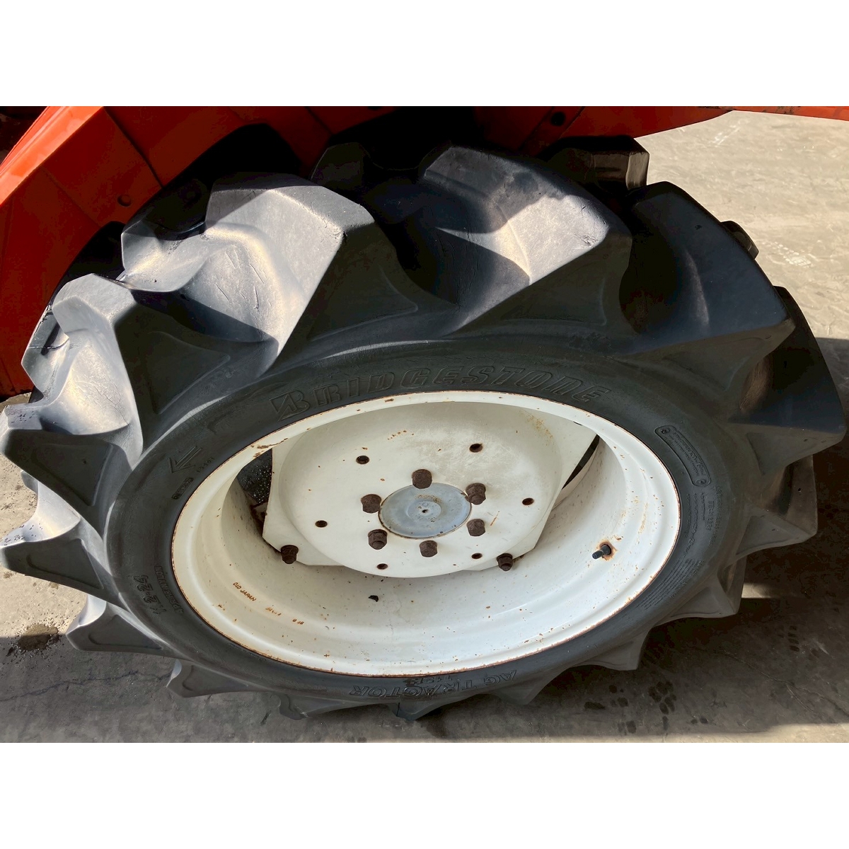 - without rotary, weak battery, without PS, cracked all tires, PTO keeps spinning even when disengaged, oil is seeping from bottom part of tractor, oil leak from front left tire, with canopy