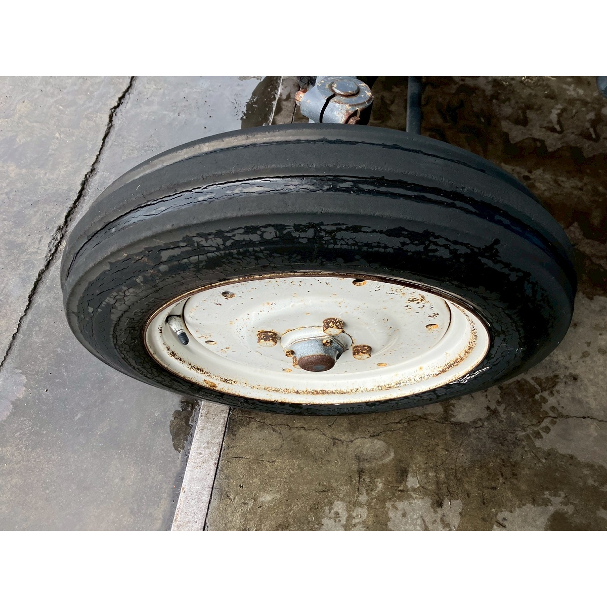 - with rotary, no battery, without PS, cracked and worn all tires, oil leak from bottom part of tractor, oil is seeping from rear tires, cracked front mask