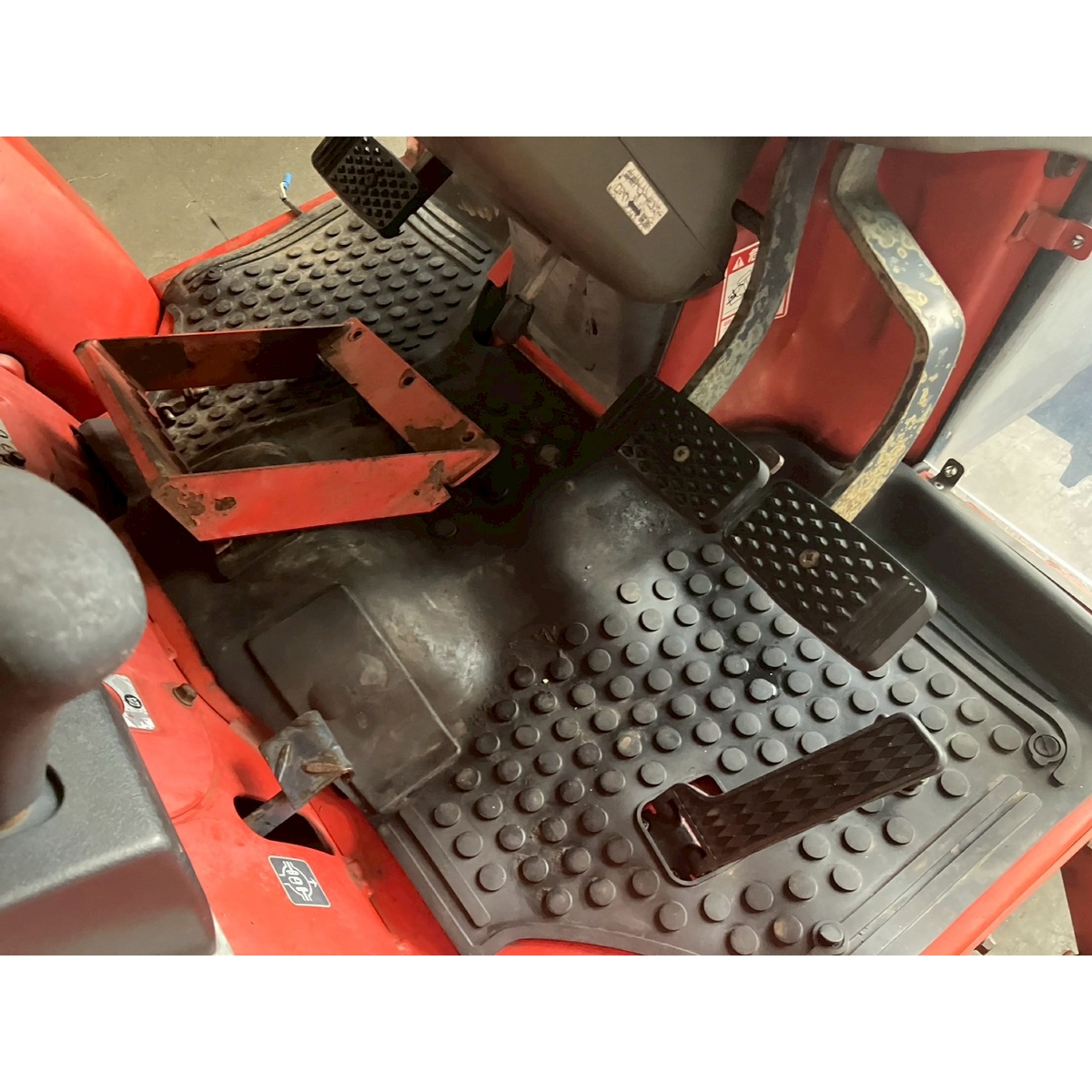 - with rotary, battery ok, with PS, cracked and worn all tires, oil is seeping from front right tire, slightly PTO lever is sticking