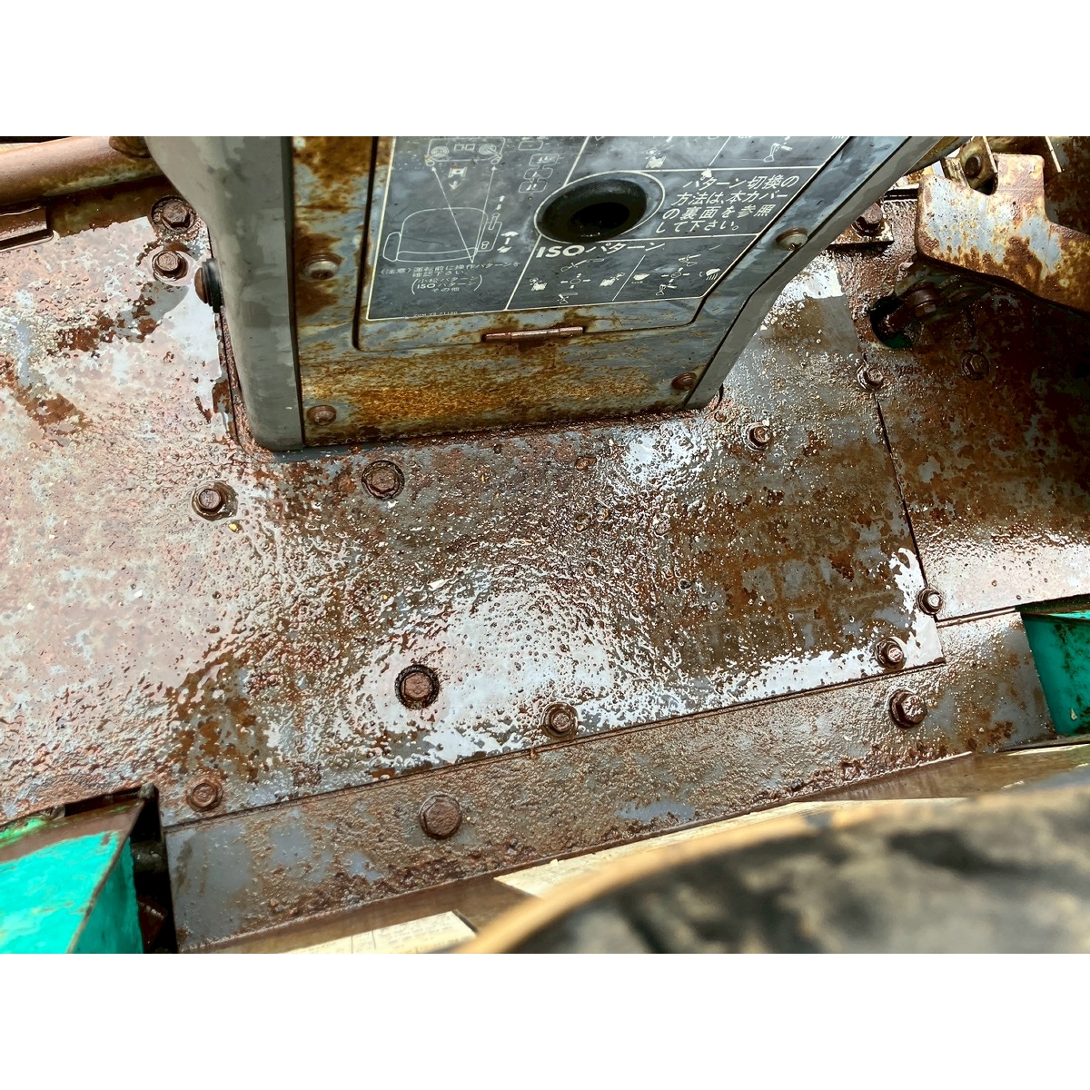 - no battery, worn crawlers, engine does not work (fuel is not circulating because the fuel pump is broken), starter motor works and engine would run if we feed fuel directly through the filter, oil is seeping from bottom part of tractor