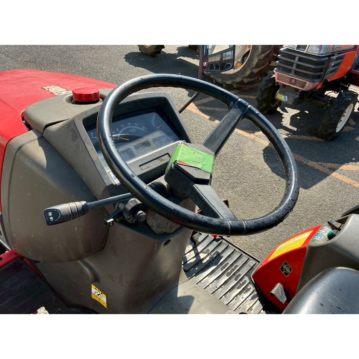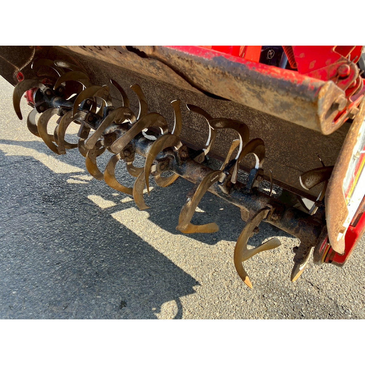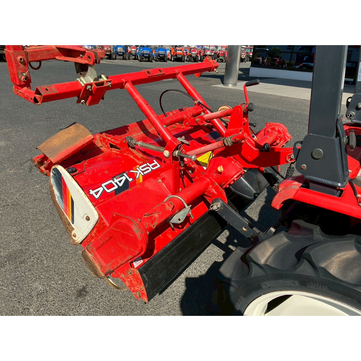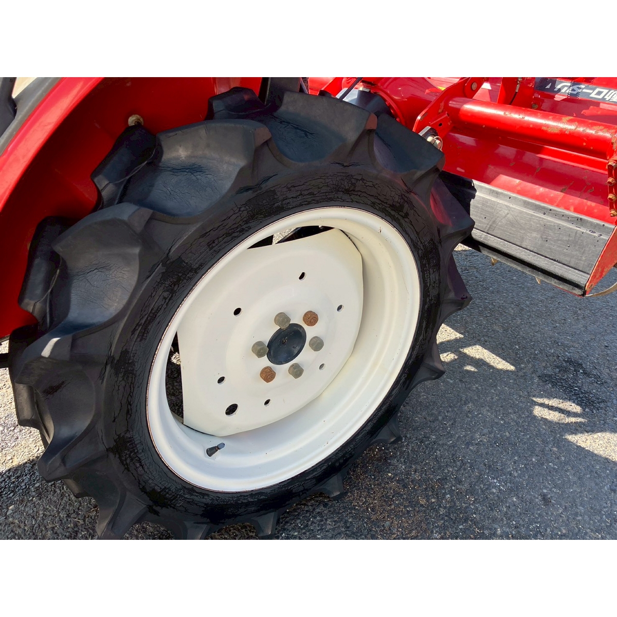 - with rotary, battery ok, with PS, engine ok, cracked front left and right tires, slightly cracked rear tires, small scratches on bonnet, bottom part of tractor has rust, without rotary's horizontal control