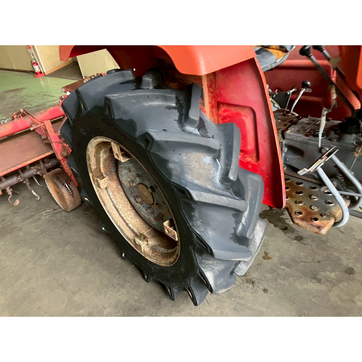 - with rotary, no battery, without PS, cracked and worn all tires, loose fan belt