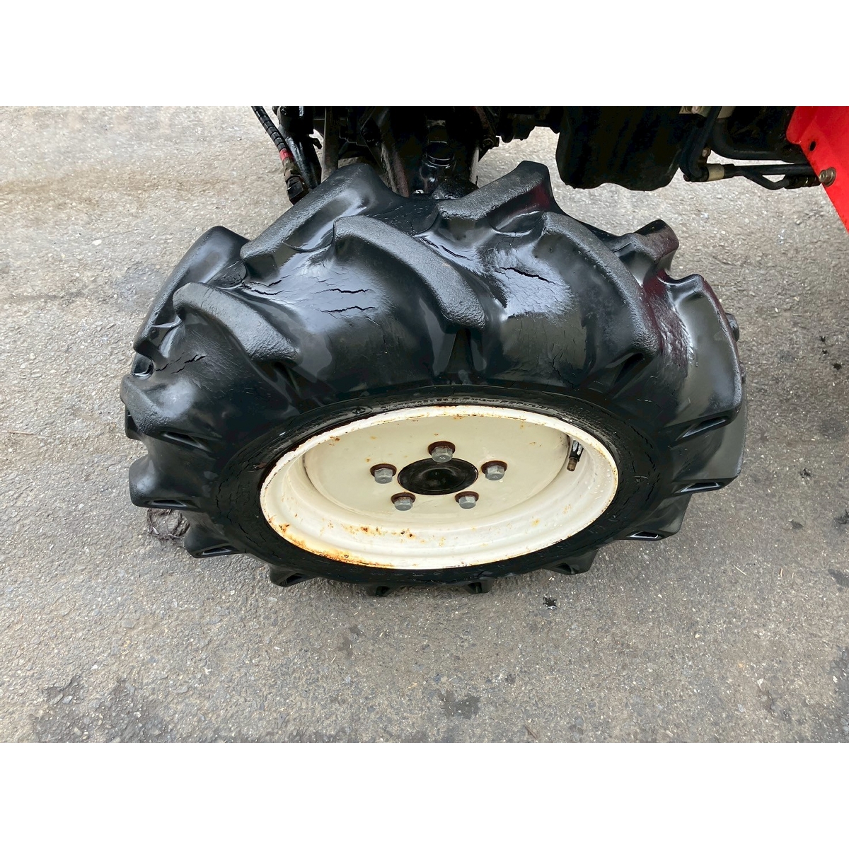 - with rotary, battery ok, with PS, cracked all tires, slightly weak clutch, PTO turns but rotary's knives do not turn, oil leak from bottom part of tractor, high speed gear in sub transmission does not work, with canopy