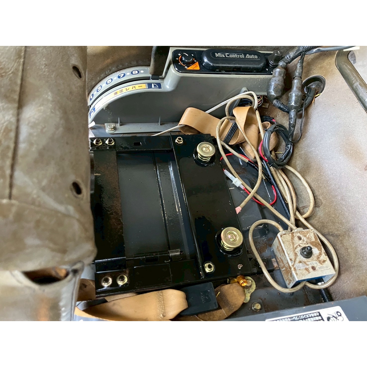 - with rotary, no battery, with PS, cracked tires, Loader up/down only works with the external control unit, Front mask cracked