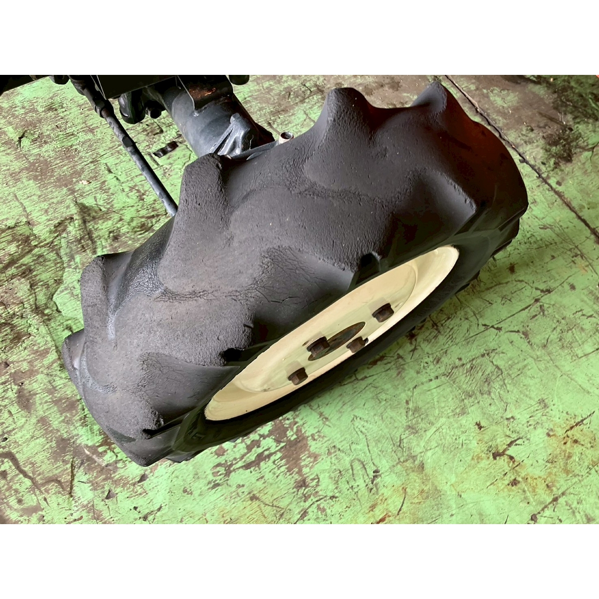 - with rotary, without ps, crack and worn tires, Steering wheel is stiff.
