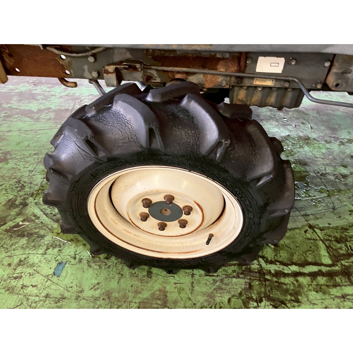 - with rotary, with battery, with ps, worn tires, rotary does not lower, slight play in water pump, oil seepage at left rear wheel, clutch return is poor
