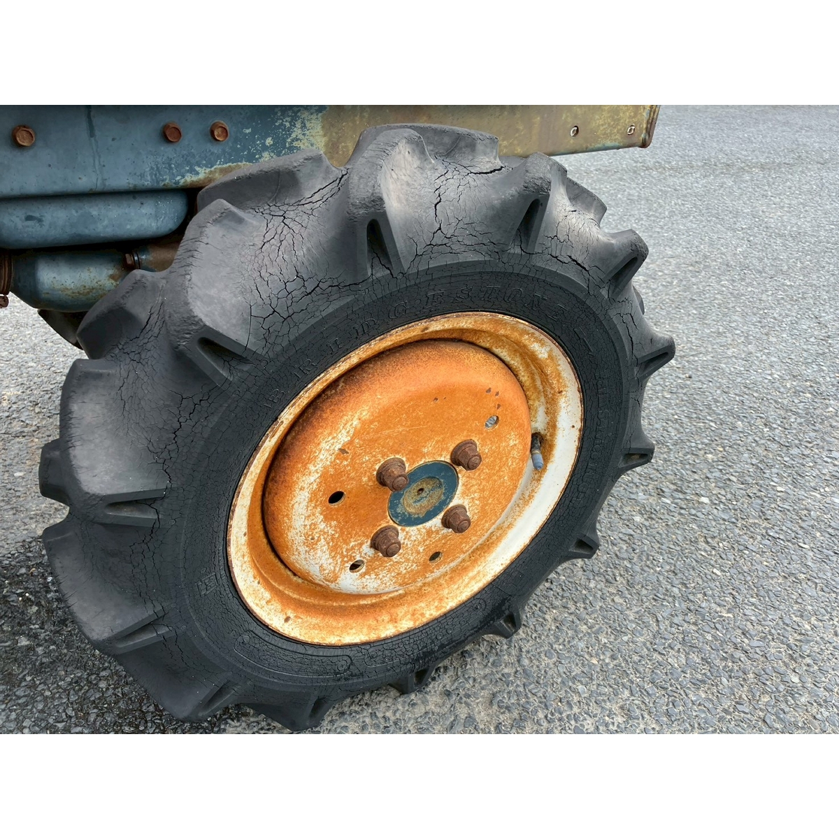- without battery, without ps, exterior rusty and faded, seat torn, tires cracked, lights missing, rear hub oil leak, PTO shaft oil leak, operation ok
