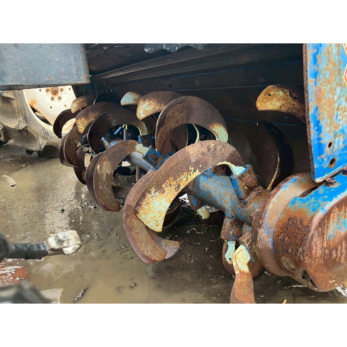 - with rotary, with battery, with ps, rack tires, lower hose deteriorated causing oil leak, hood dented, front mask cracked, repainted, paint peeling, missing joint