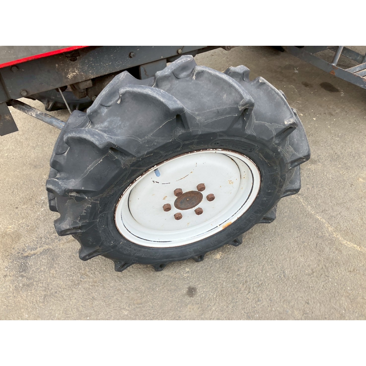 - with rotary, with battery, without ps, missing one joint, plastic around steering wheel cracked, rotary lift not working, pto 3rd gear stiff and difficult to engage, left fender dented