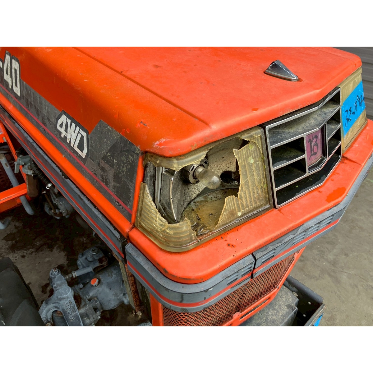 - with rotary, battery ok, without PS, cracked right front light, cracked and worn all tires, engine is racing