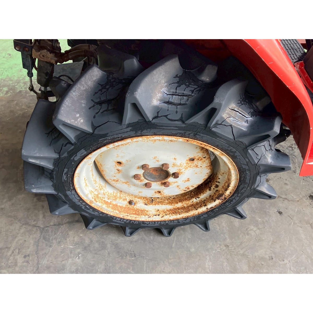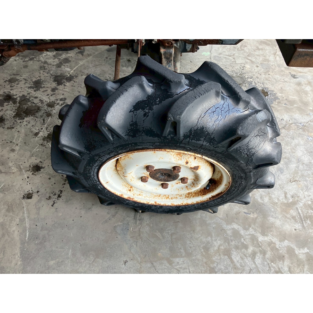 - without rotary, battery ok, without PS, cracked and worn all tires, rusty tractor, brake pedal does not return smoothly