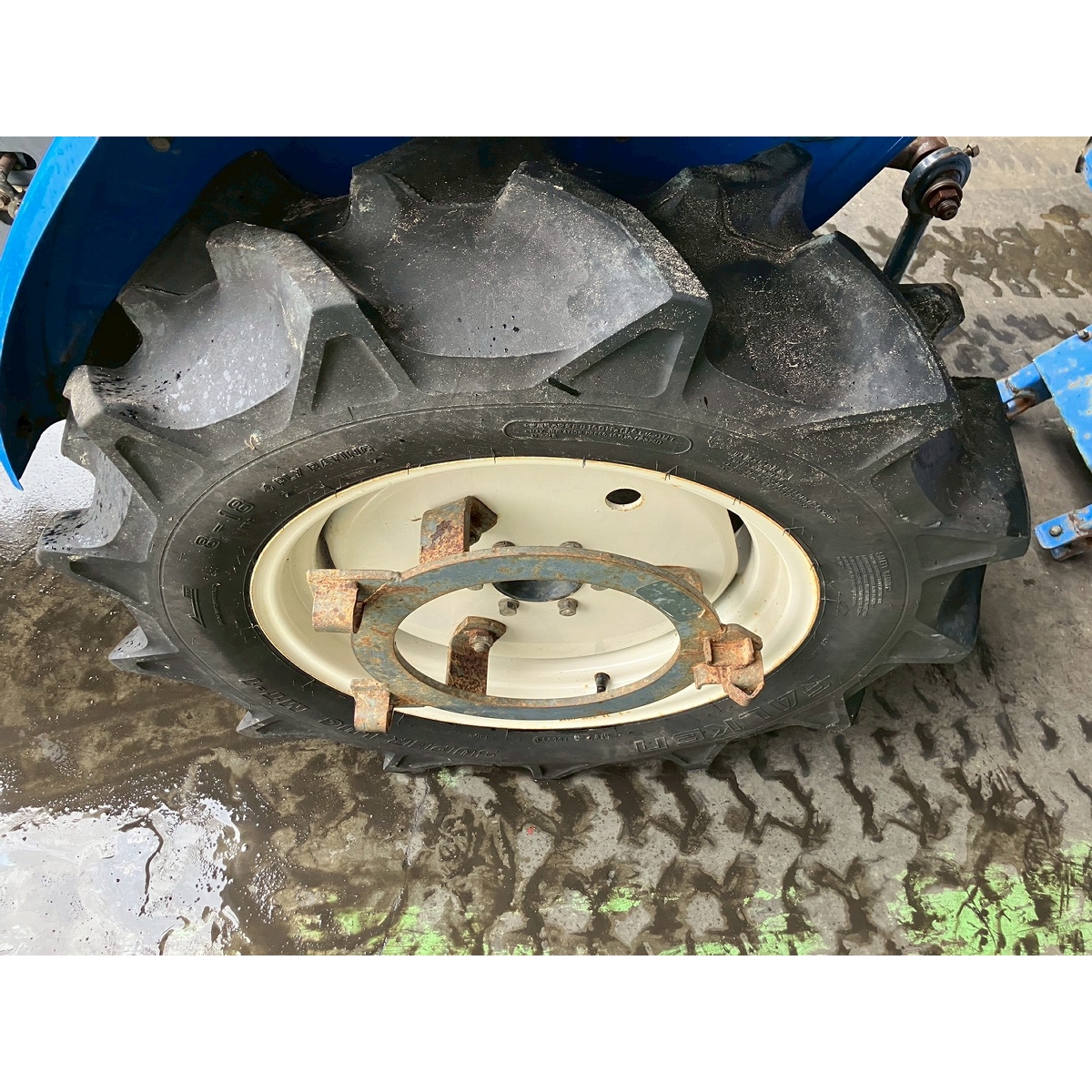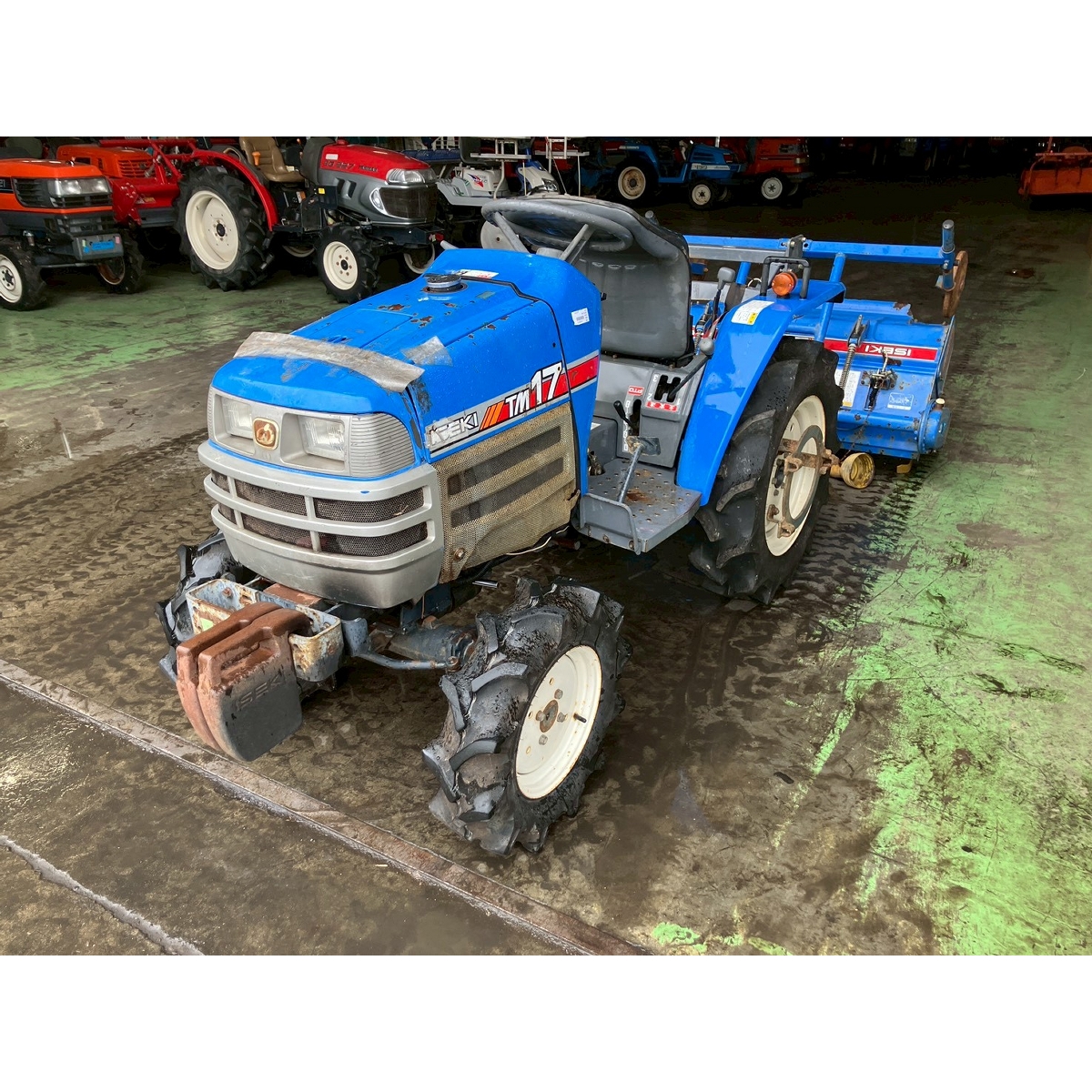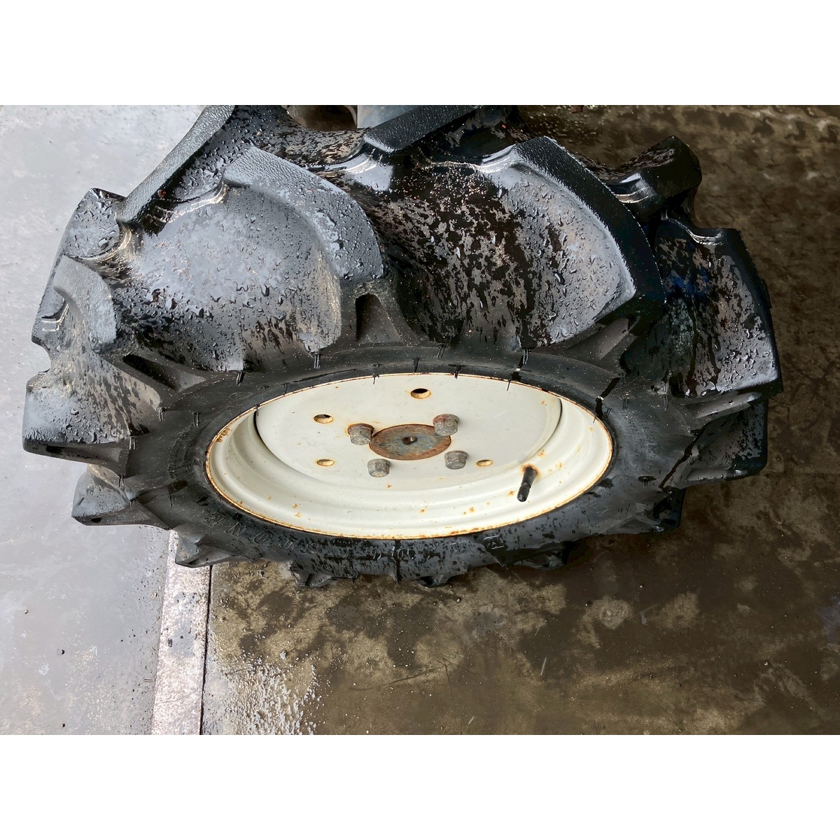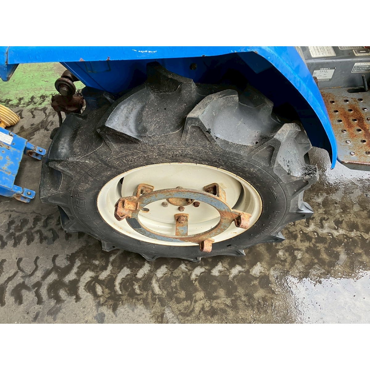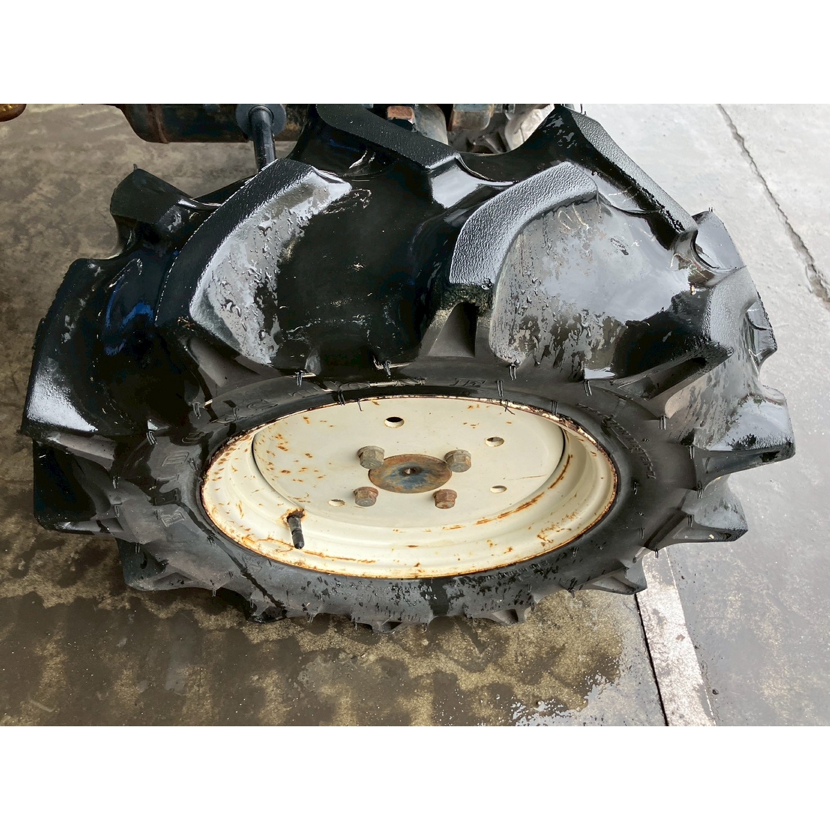 - with rotary, no battery, with PS, cracked and worn all tires, rattling power steering and rotary's lifting, engine is slow to start, white smoke would disappear after idling, rusty bonnet, oil is seeping from front left tire and PTO's part