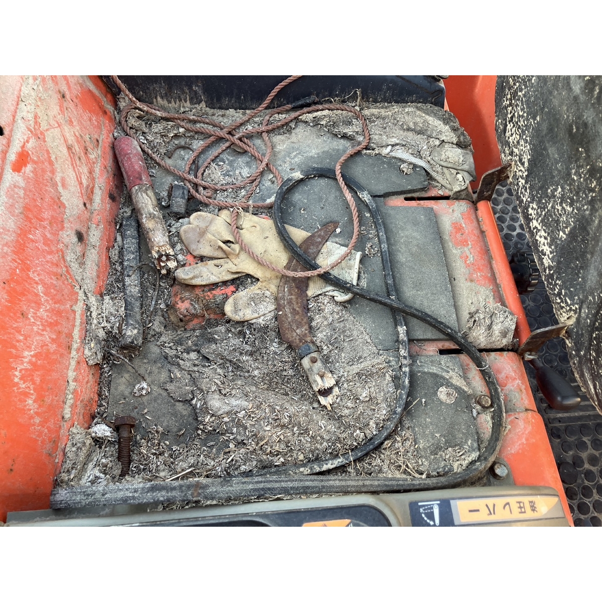 - with rotary, weak battery, with PS, cracked front left and right tires, front left tire is flat, rotary does not shift up/down, missing rotary's tale wheels, loose fan belt, cracked and dented front mask, torn seat, oil leak from transmission
