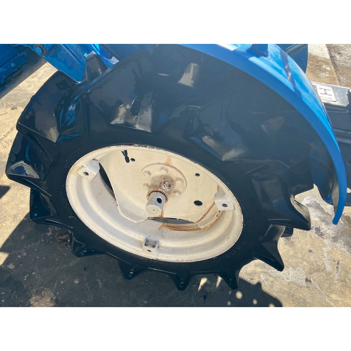- with rotary, batter ok, without PS, cracked front tires, no problem in operation, slightly oil leak from bottom part of tractor and rear left/right tires' shaft, loose fan belt, whole repainting