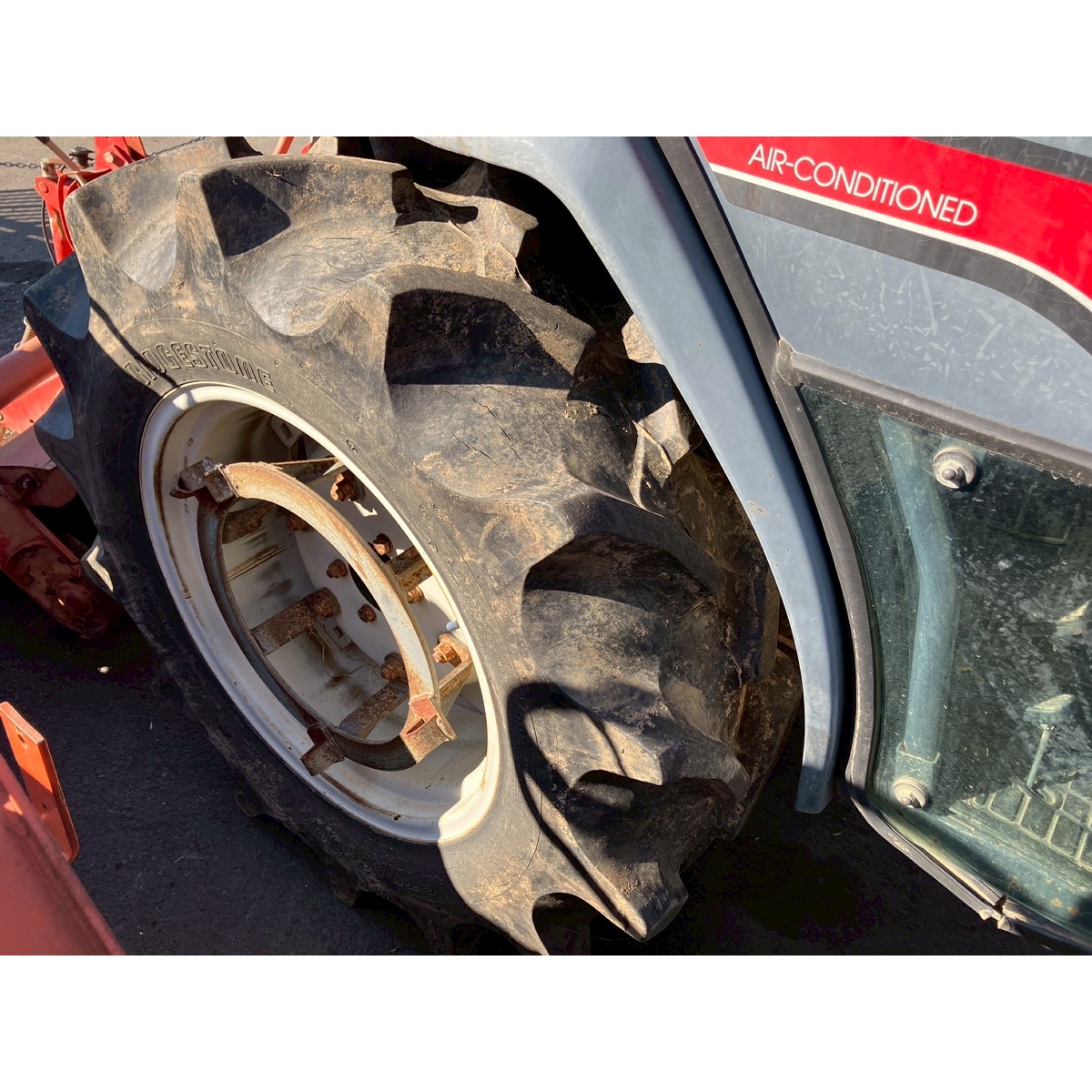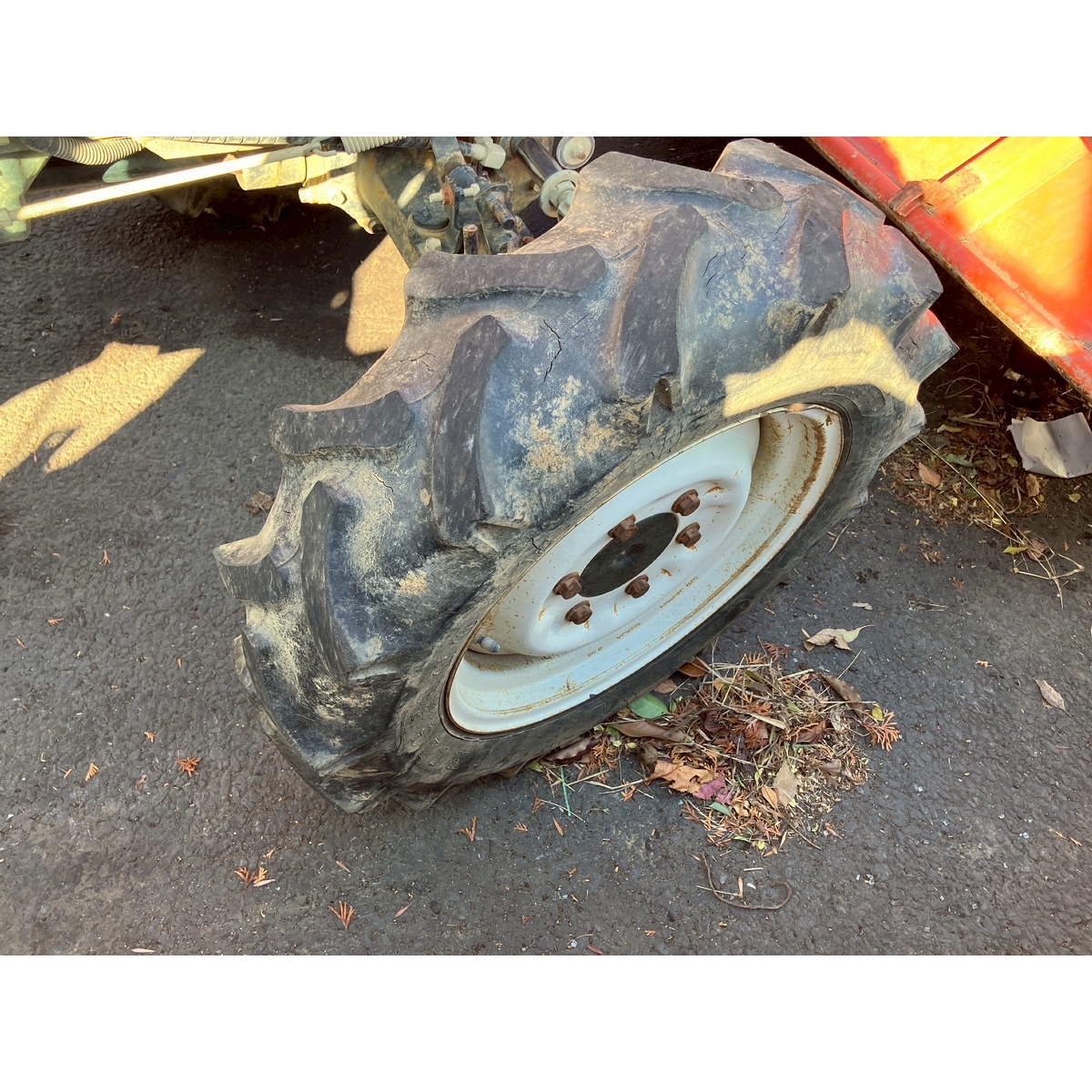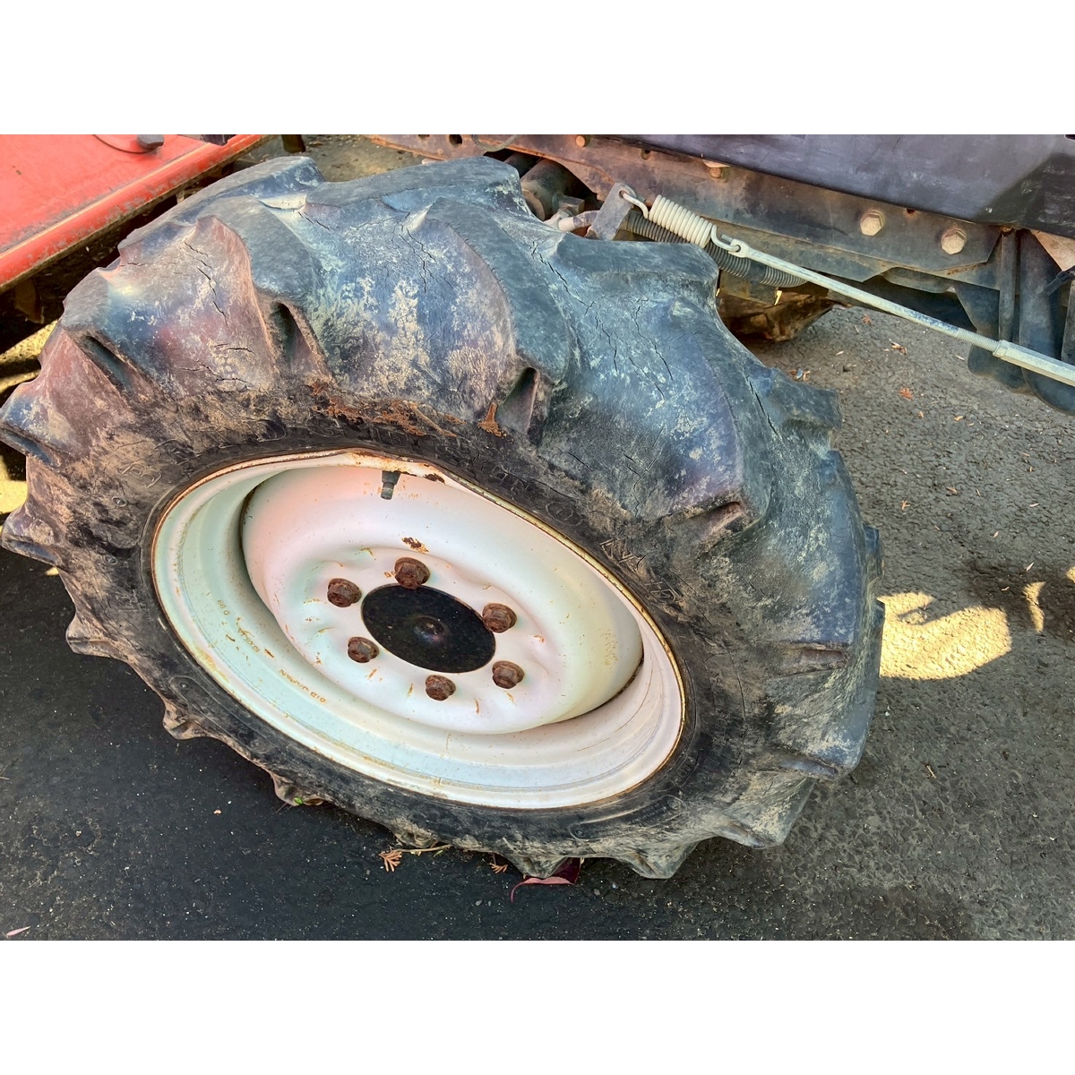 - with rotary, with cabin, battery ok, with PS, cracked front left and right tires, cracked rear right tire, missing rotary's tale wheels, oil leak from front right tire, cracked front mask