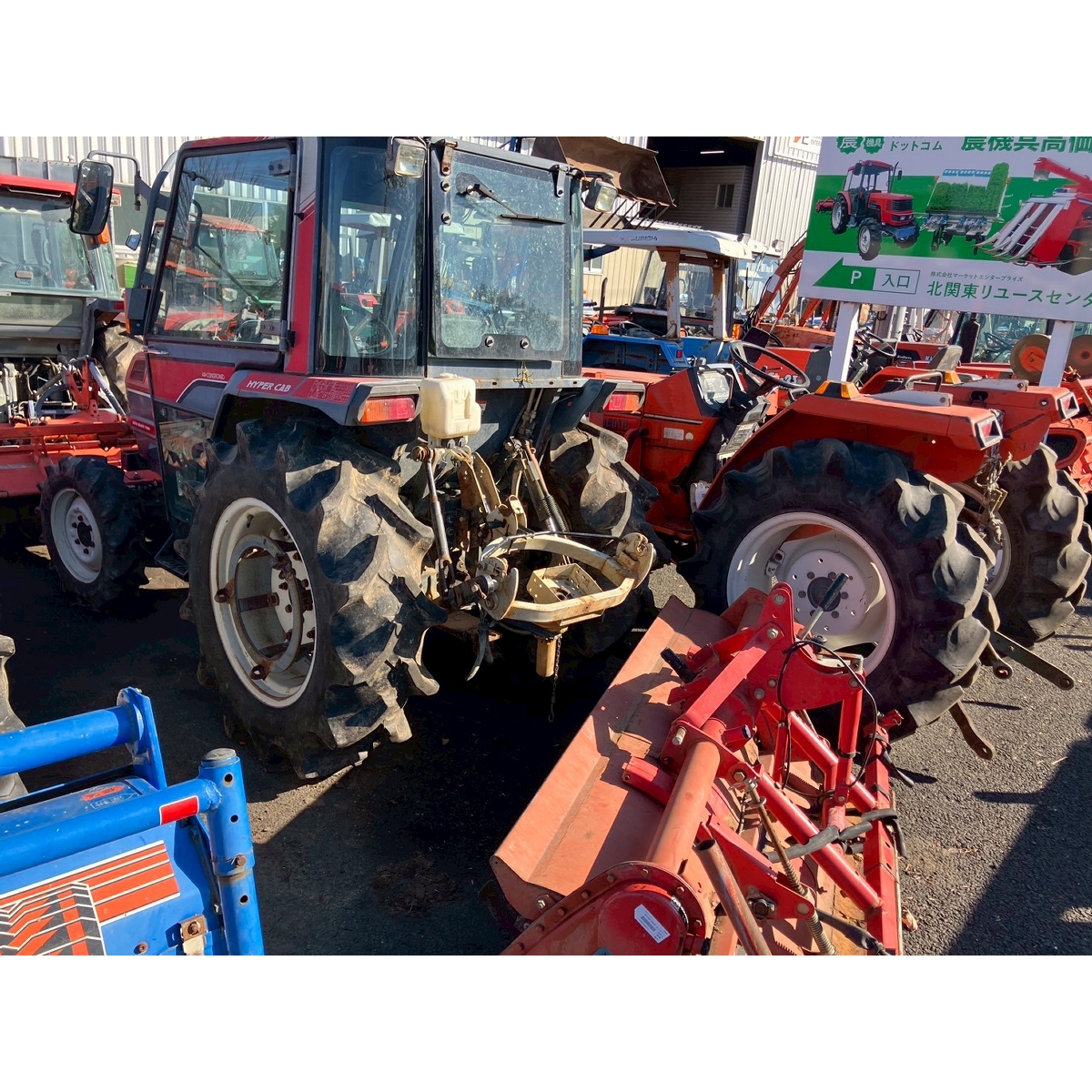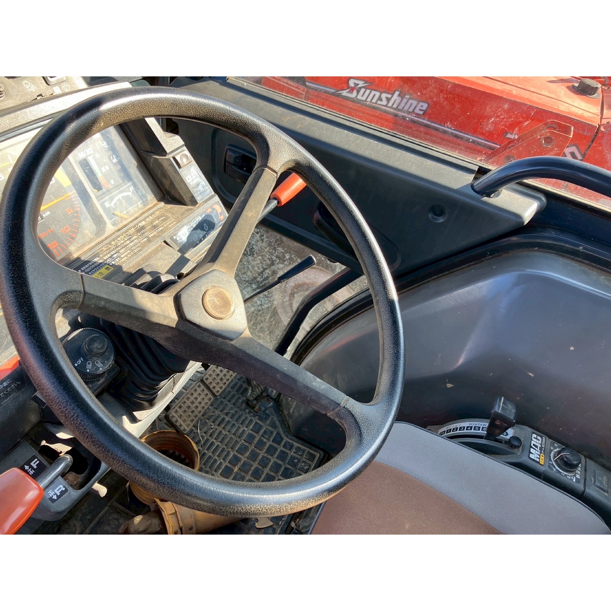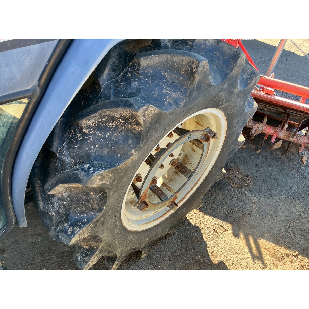 - with rotary, with cabin, battery ok, with PS, cracked front left and right tires, cracked rear right tire, missing rotary's tale wheels, oil leak from front right tire, cracked front mask
