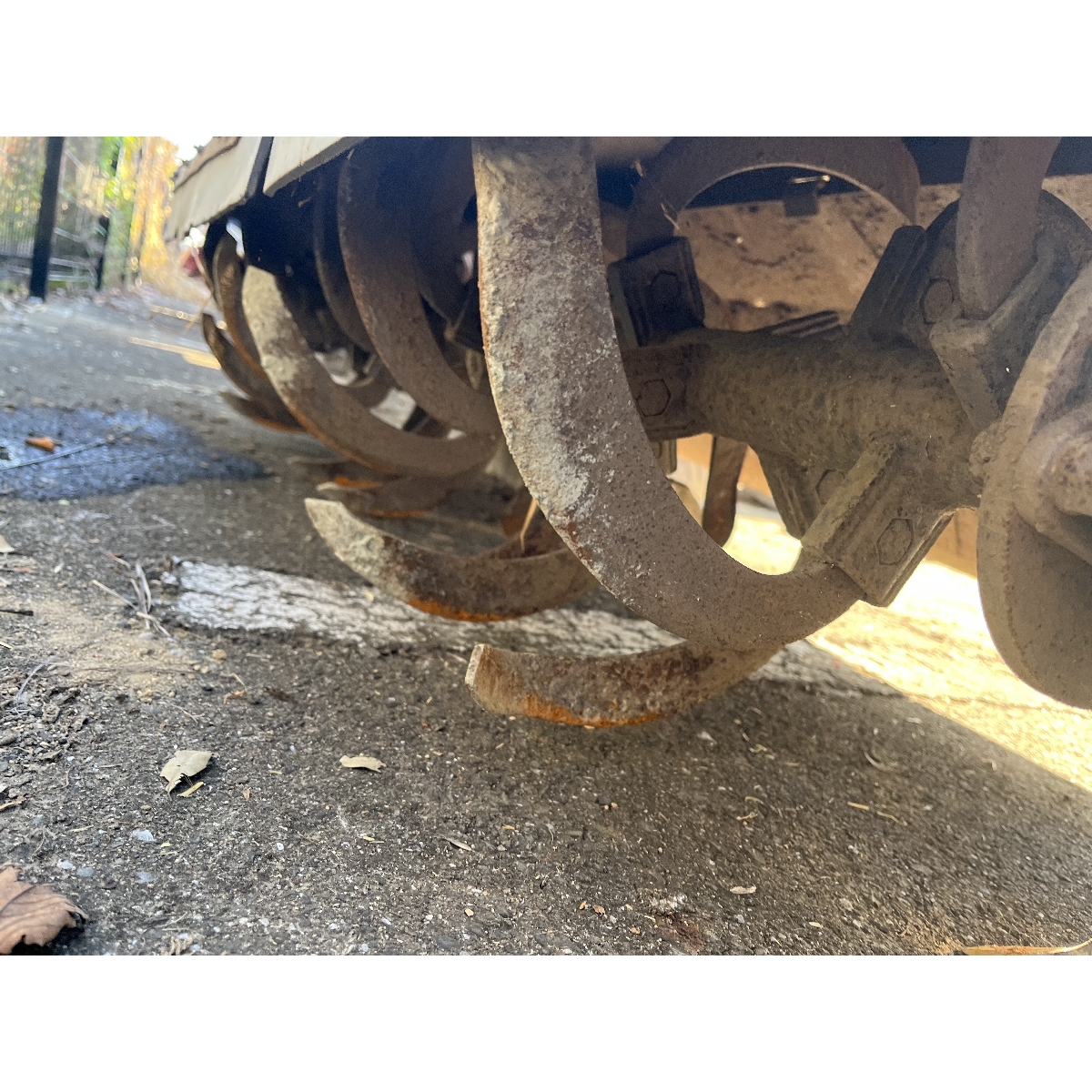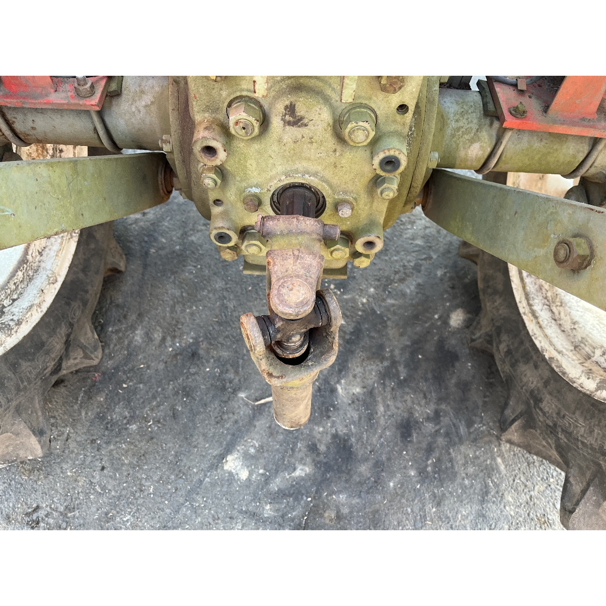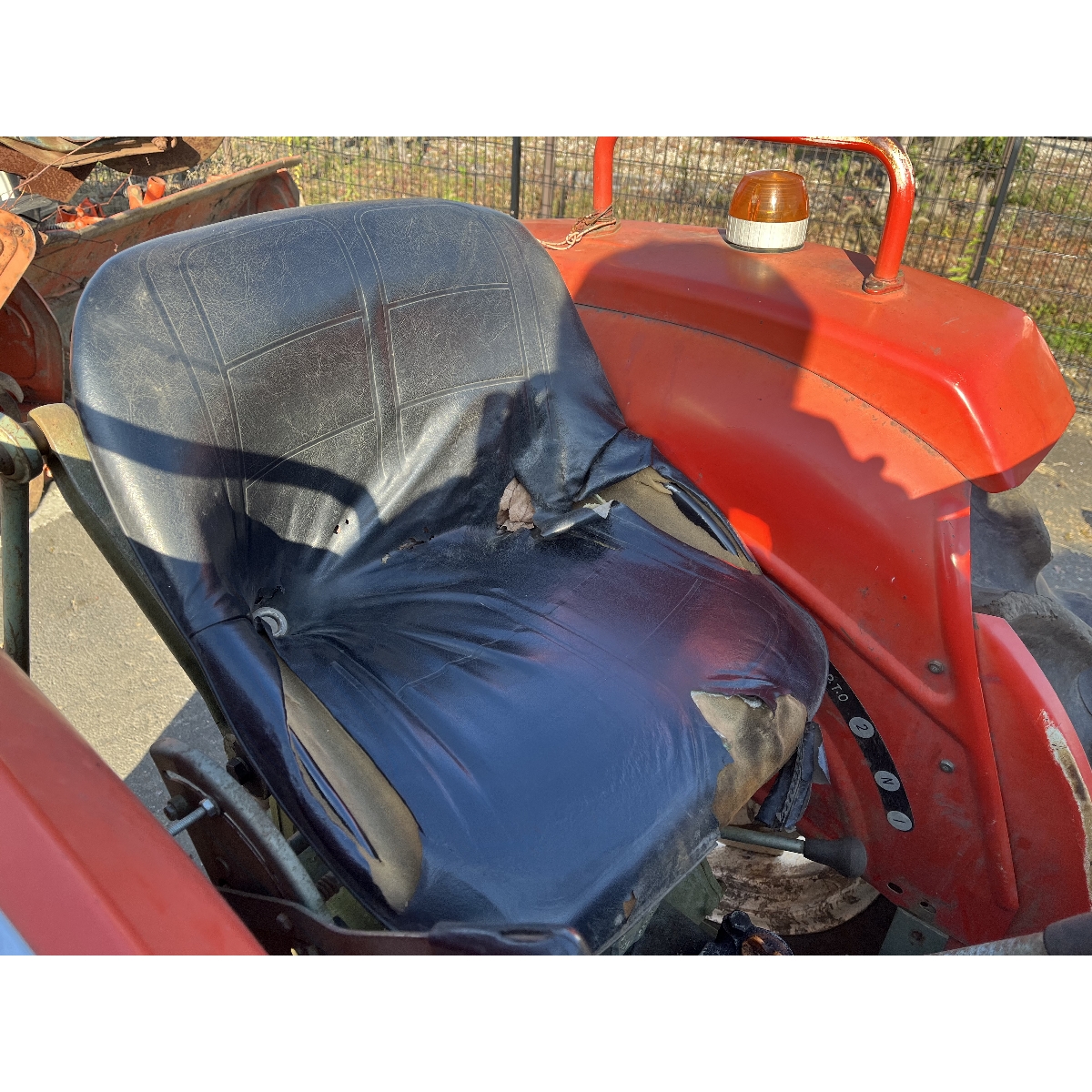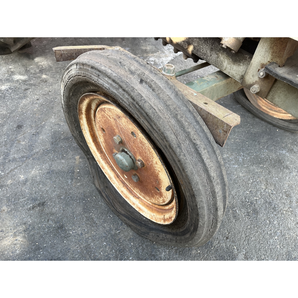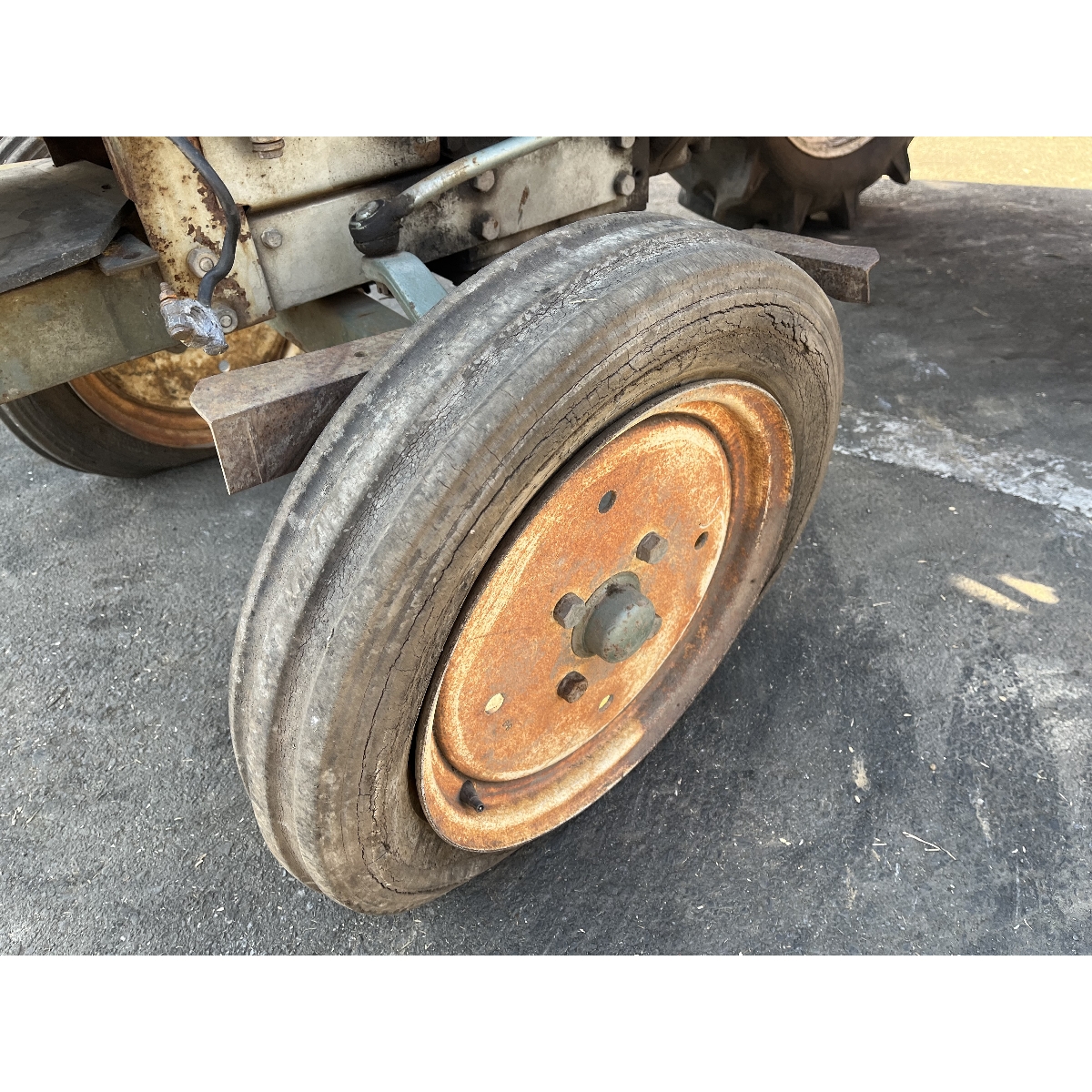 - with rotary, no battery, without PS, cracked front tires, front tires are flat, faded exterior, tractor has rust, torn seat, missing top link, oil leak from bottom part of tractor, right brake does not work, white smoke, blowby gas