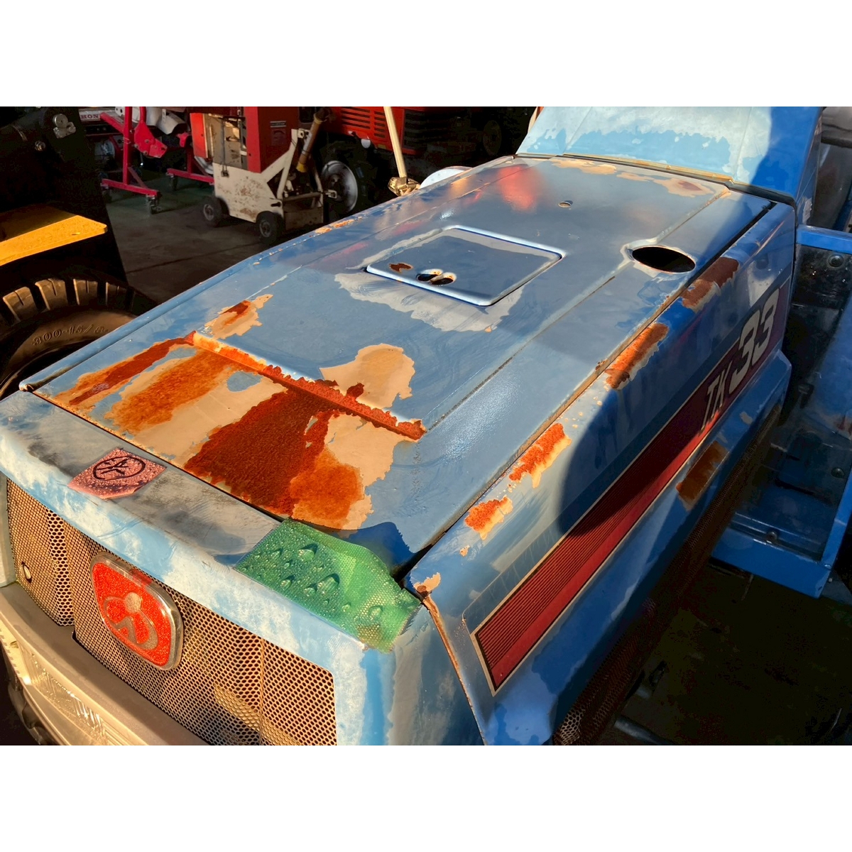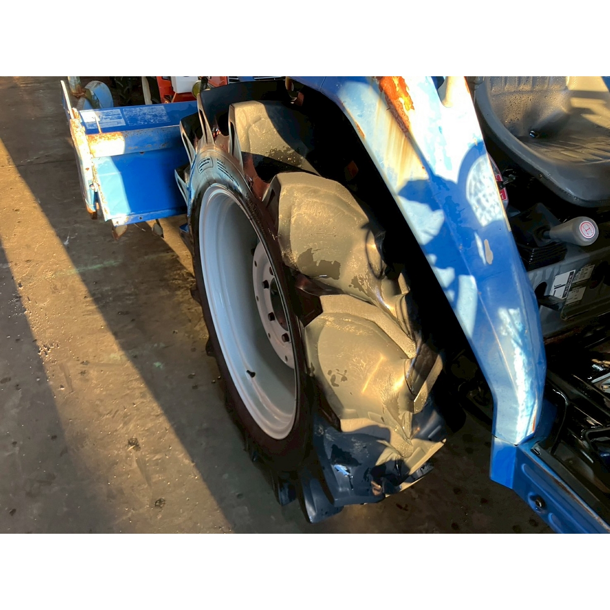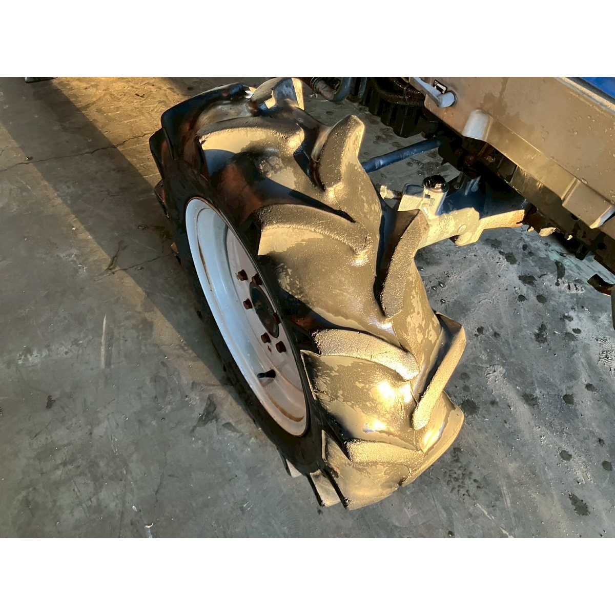 - with rotary, battery ok, with PS, cracked all tires, slightly oil leak from bottom part of tractor, white smoke