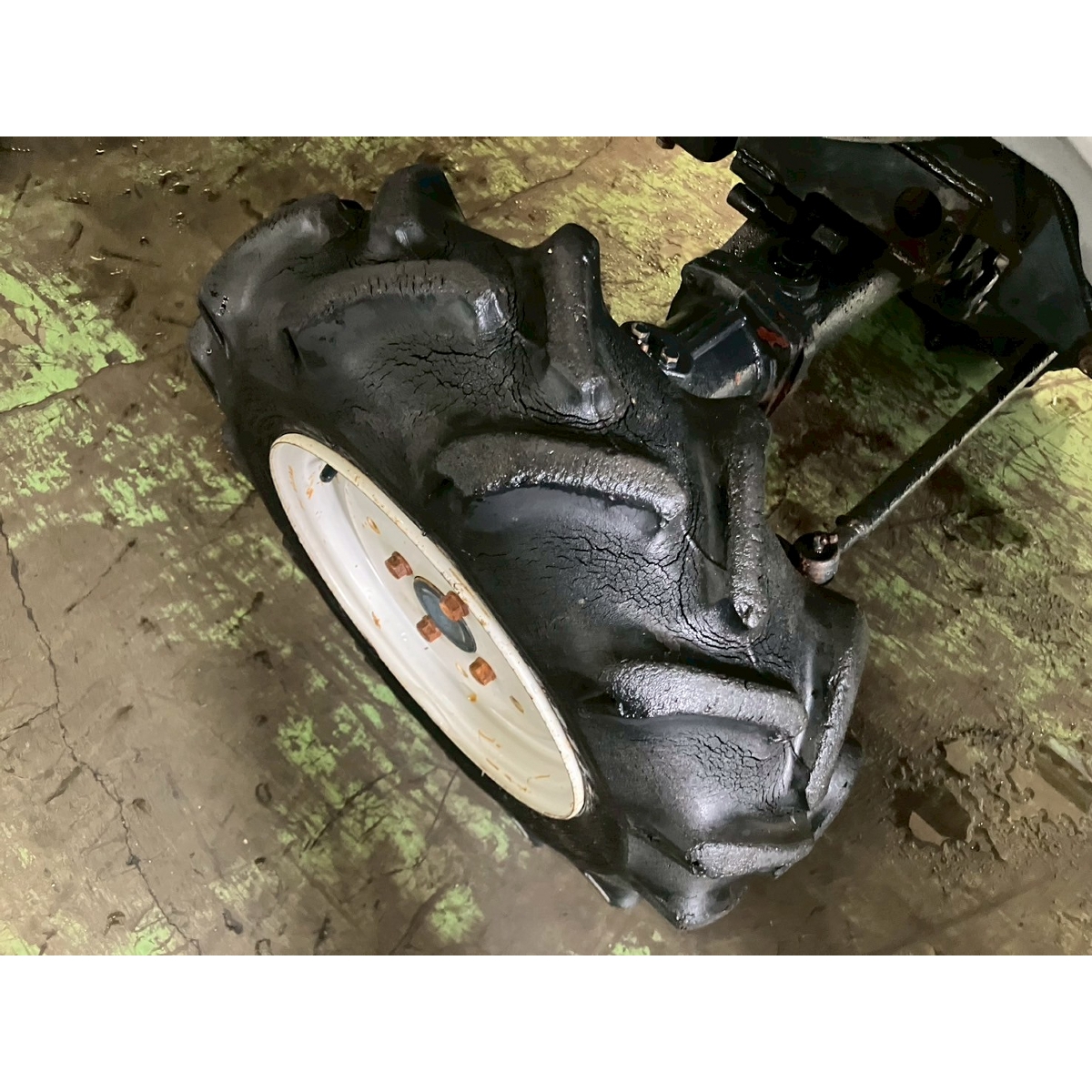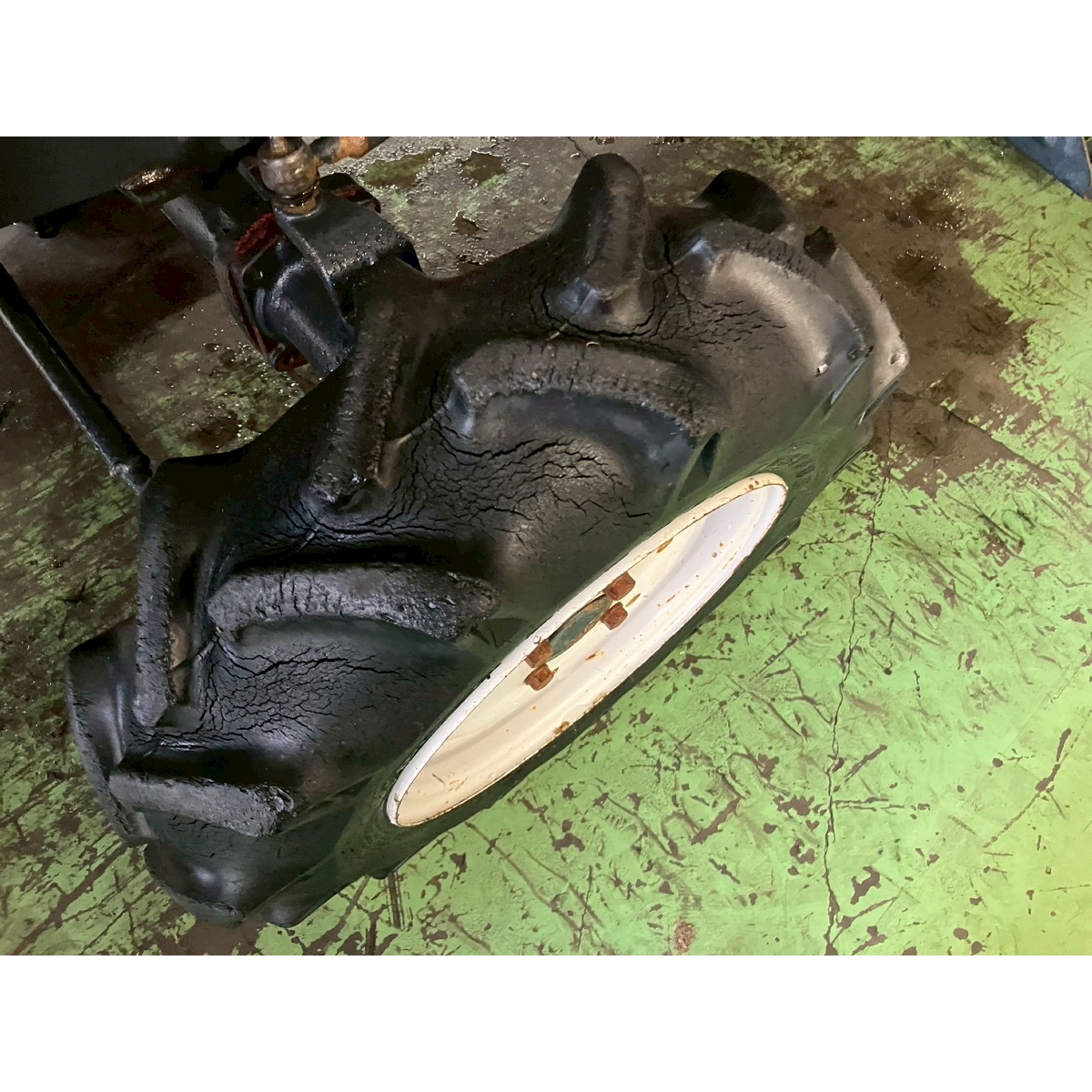 - without rotary, battery ok, without PS, cracked and worn all tires, oil is seeping from front right tire