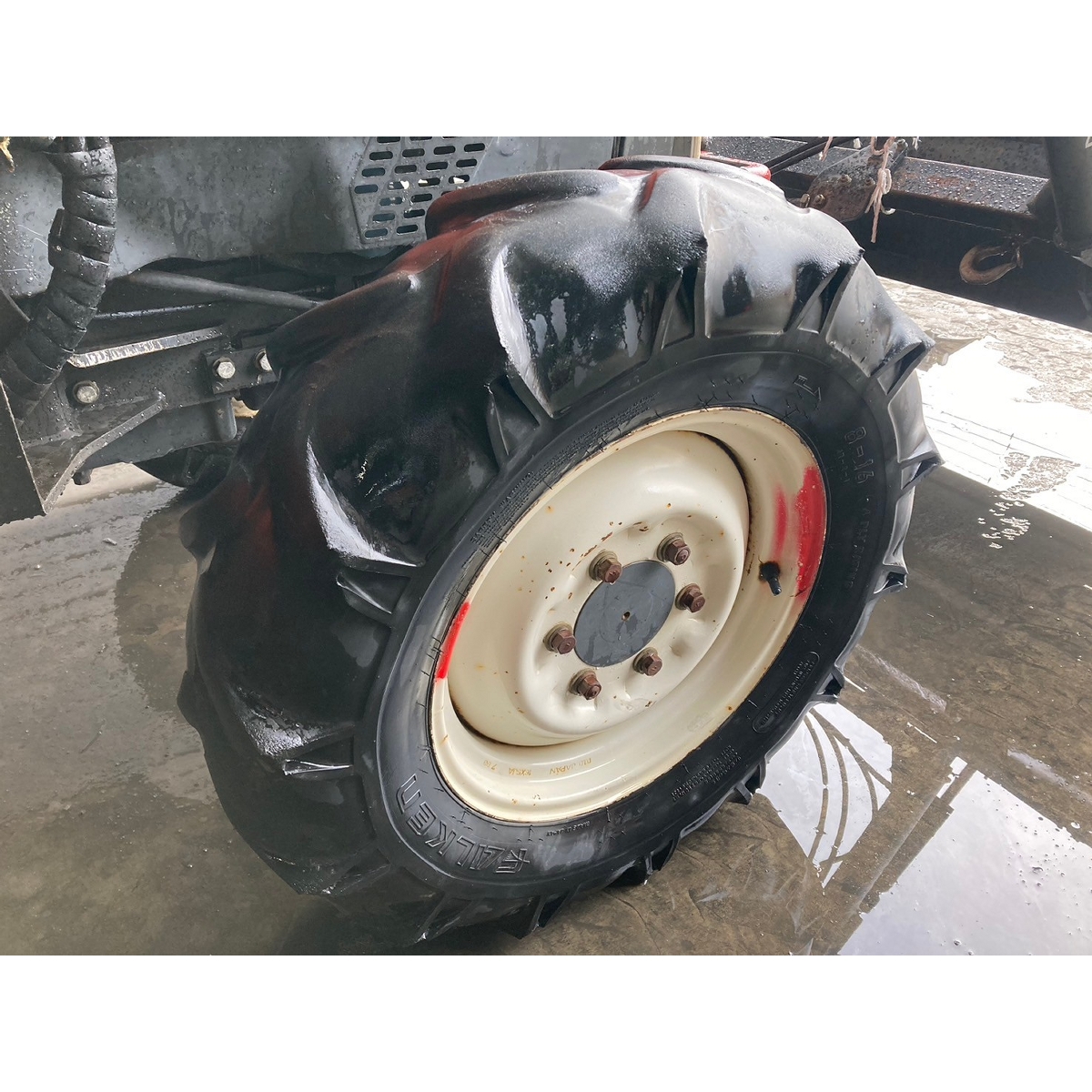 - battery ok, with PS, worn all tires, cracked rear tires, repainting, a little blowby gas, with front loader