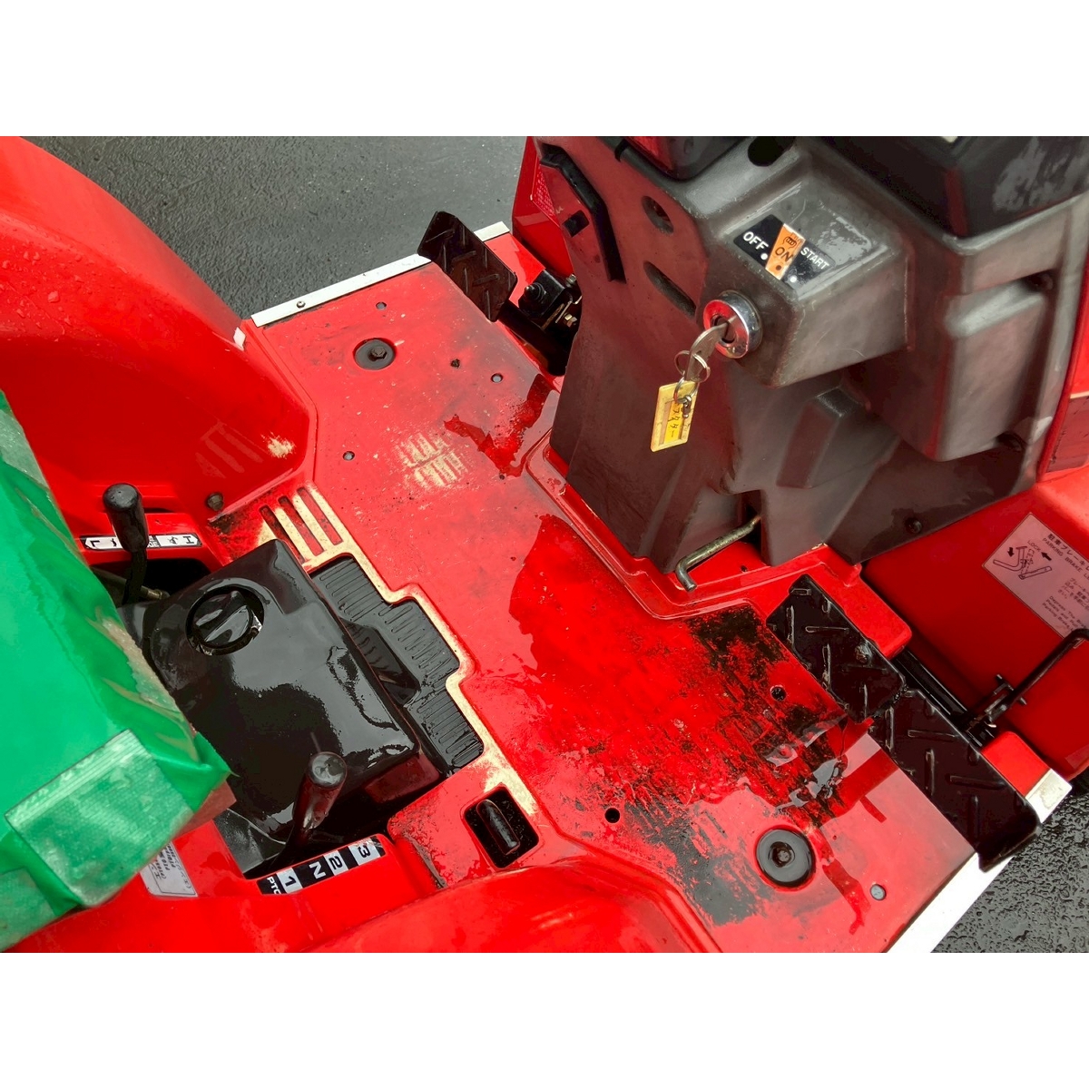 - with rotary, battery ok, without PS, cracked front tires, missing a part of bonnet's cover, oil leak from rear left tire, tires would not work if sub transmission lever is at high speed position in 4WD