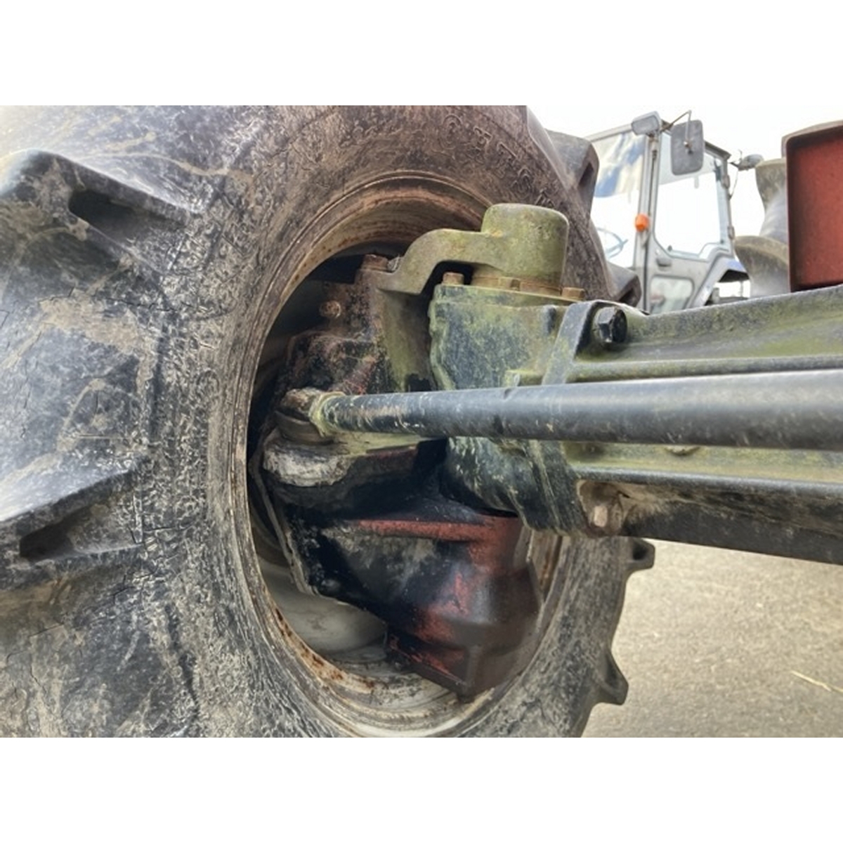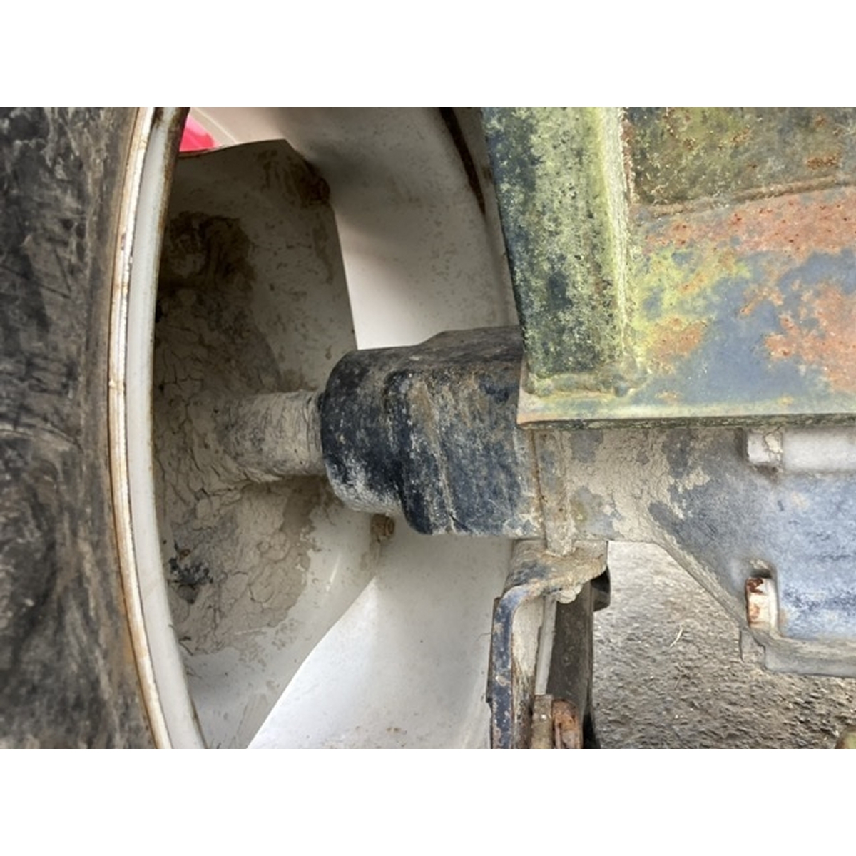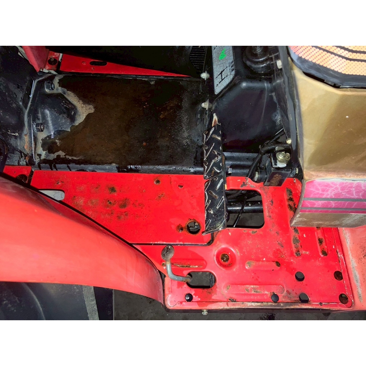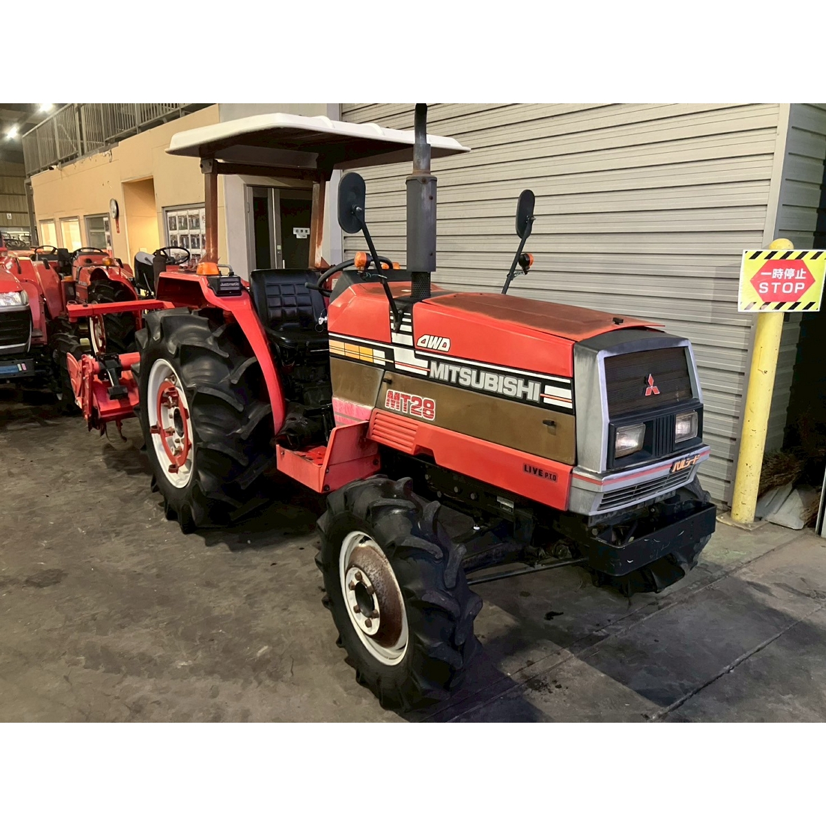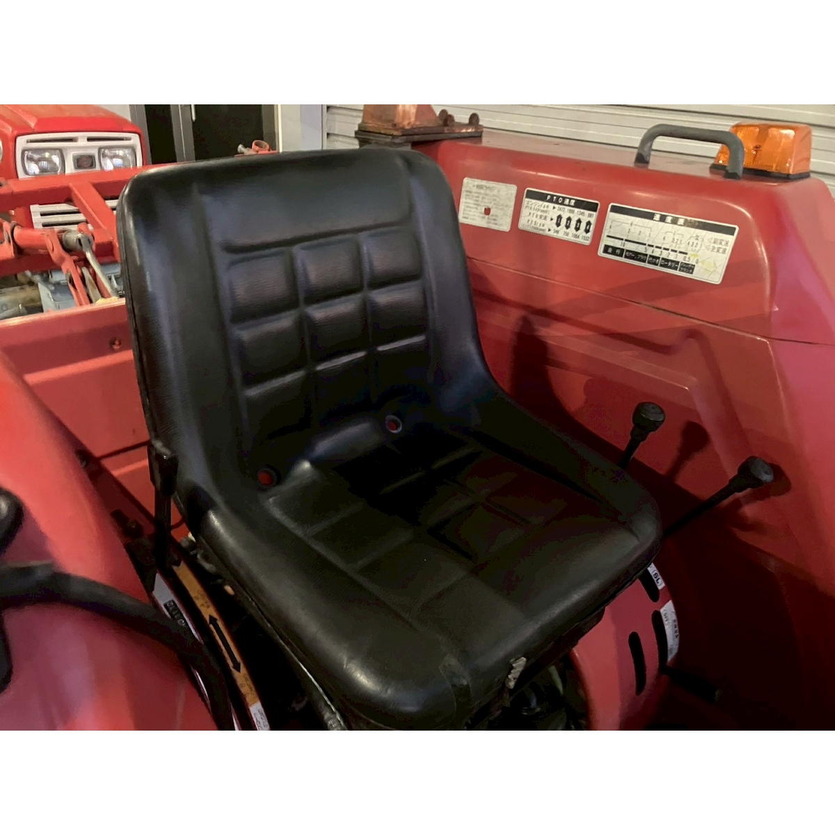 - with rotary, no battery, with PS, worn all tires, cracked rear tire, oil stain around bottom part of tractor, with canopy