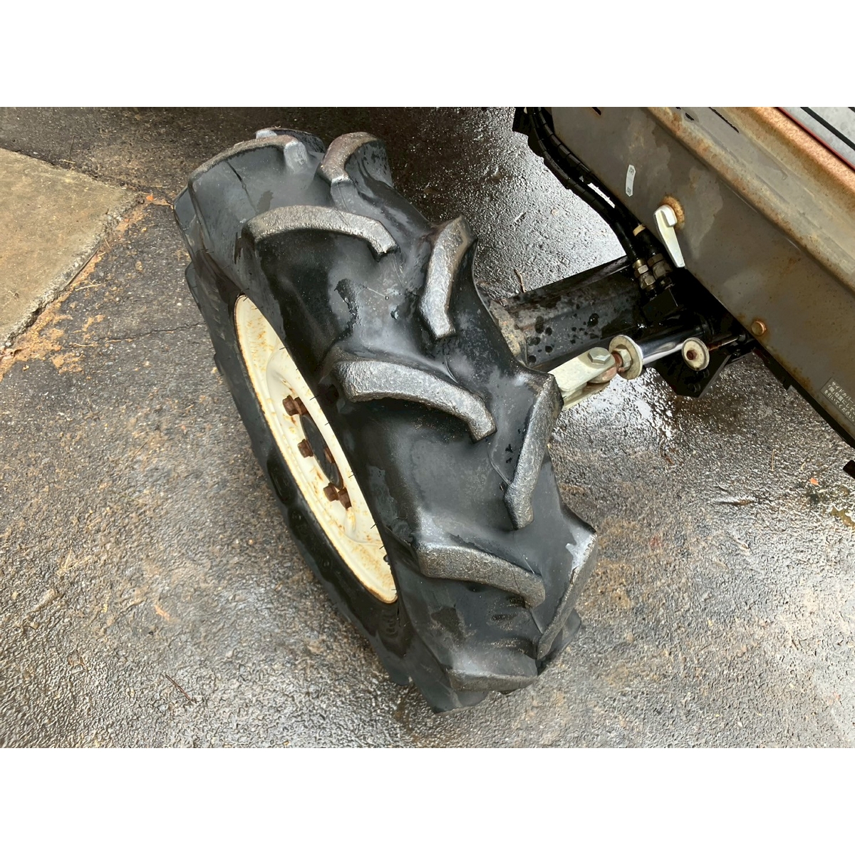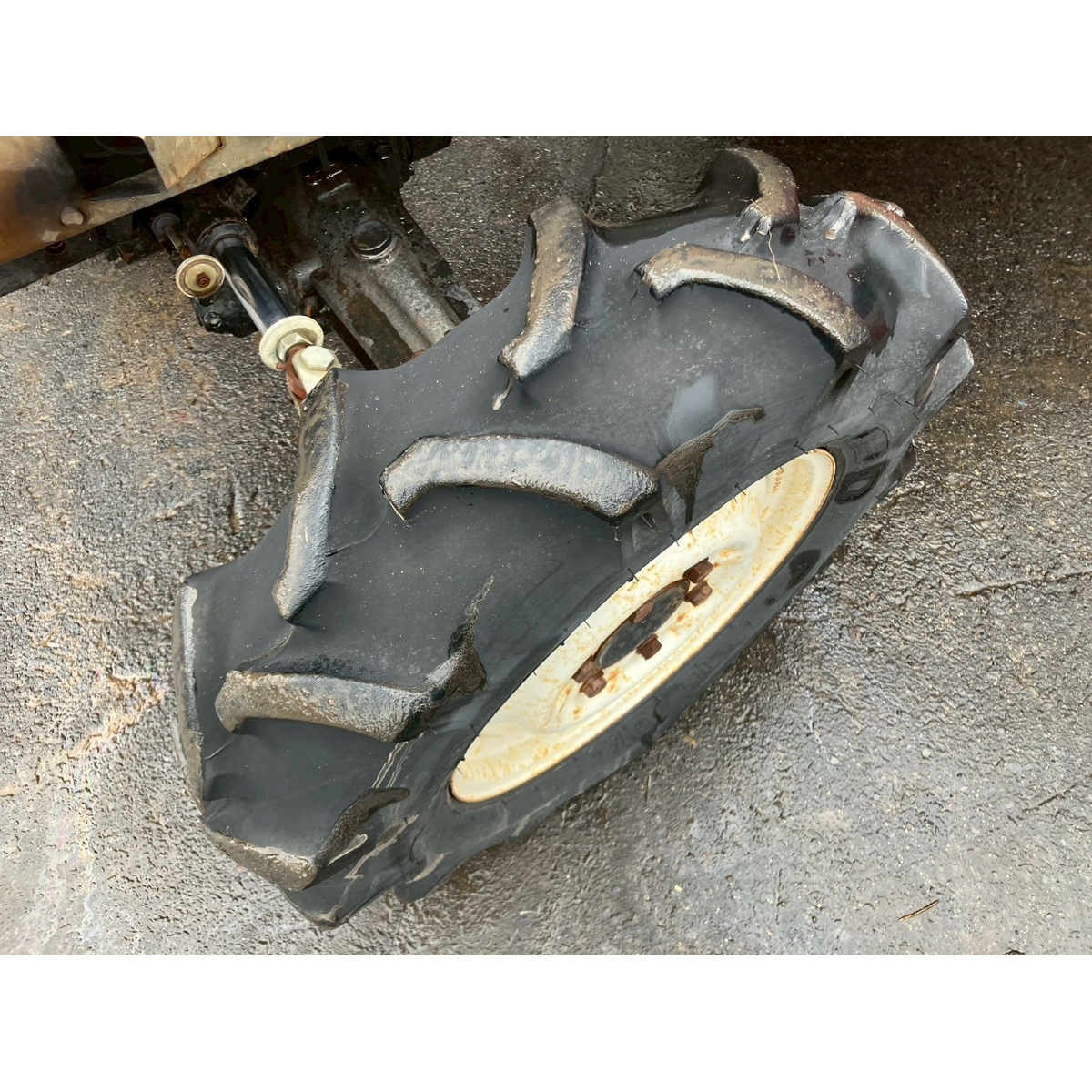 - without rotary, battery ok, with PS, worn all tires, cracked rear tire, torn fuel hose and fuel leak, cracked front mask
